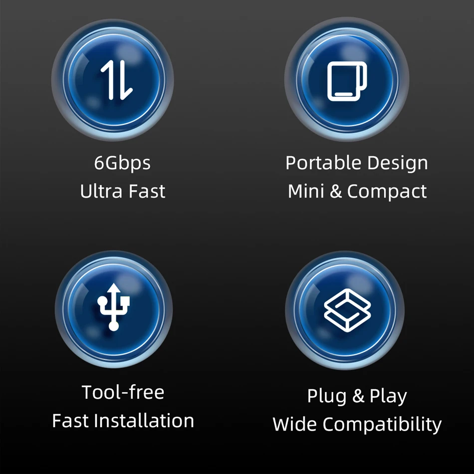Tipo de disco duro compatible: disco duro de portátil SATA de 2,5 pulgadas y unidad de estado sólido SSD, disco duro mecánico y unidad de estado sólido