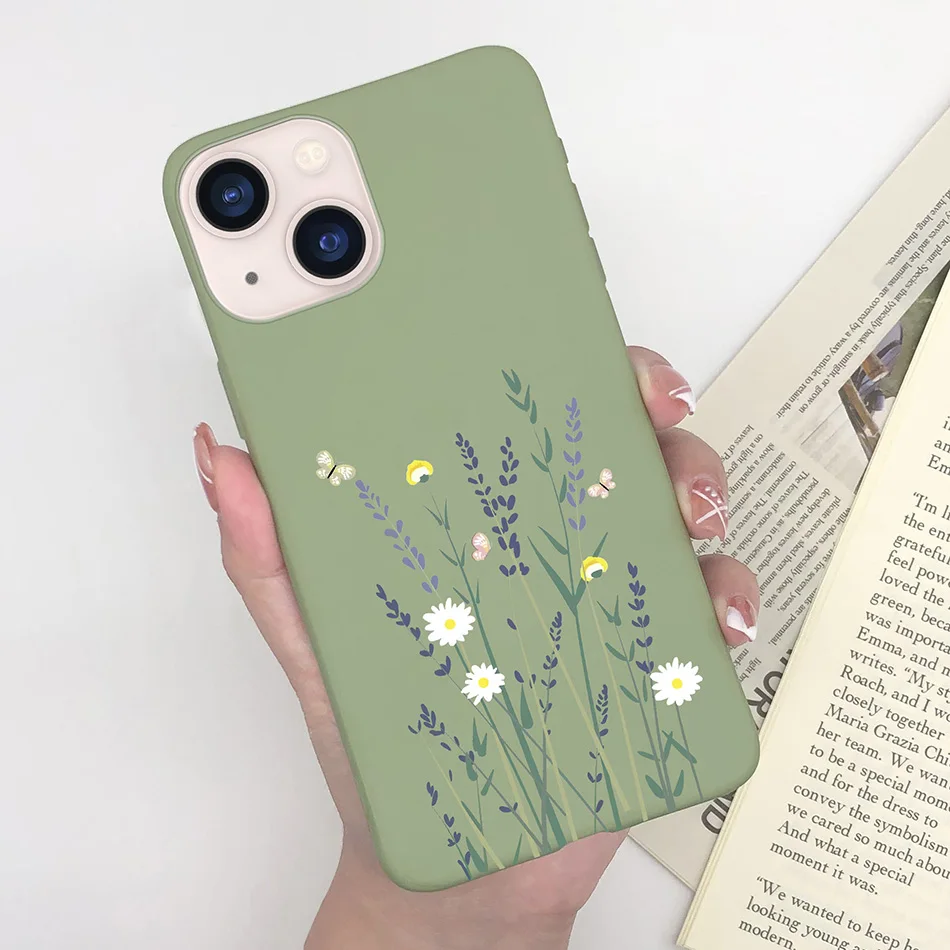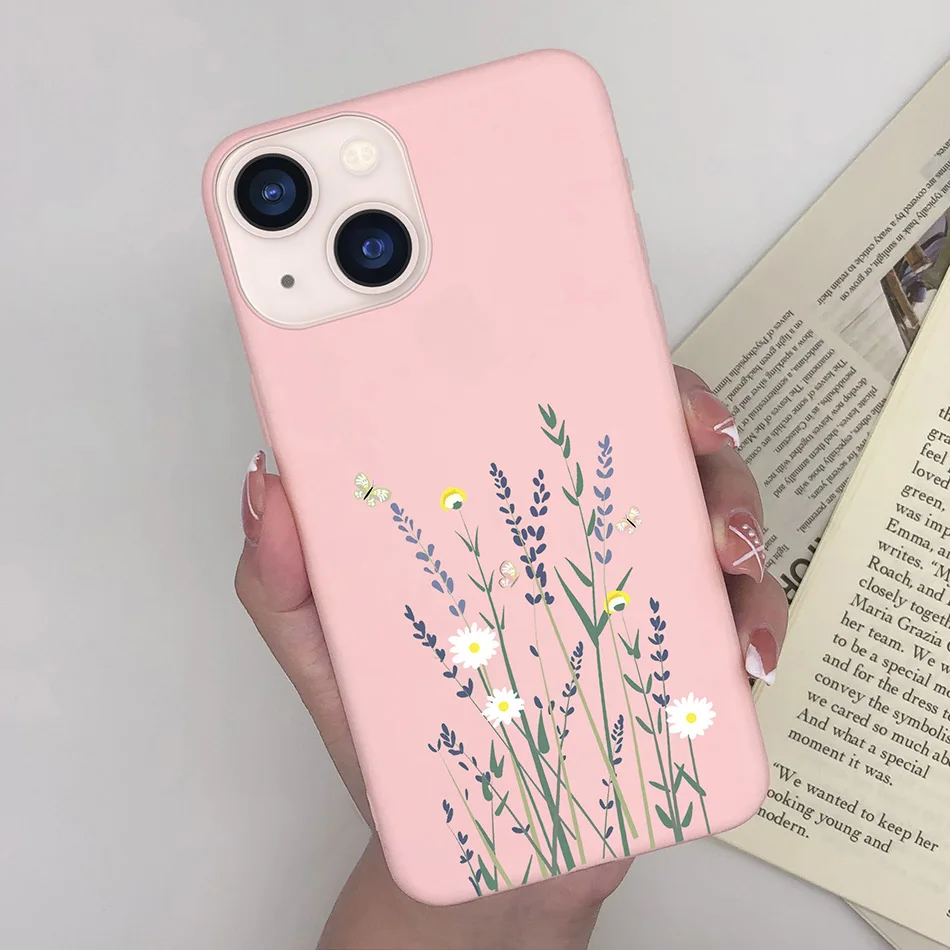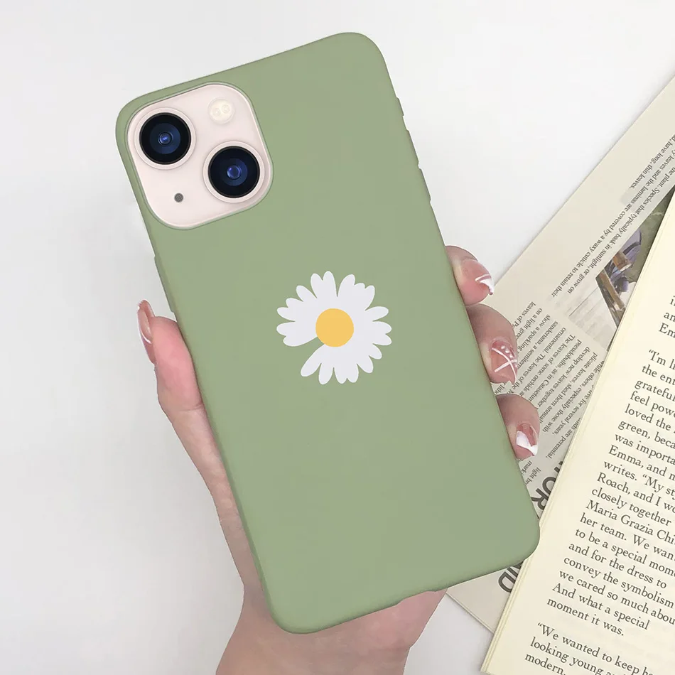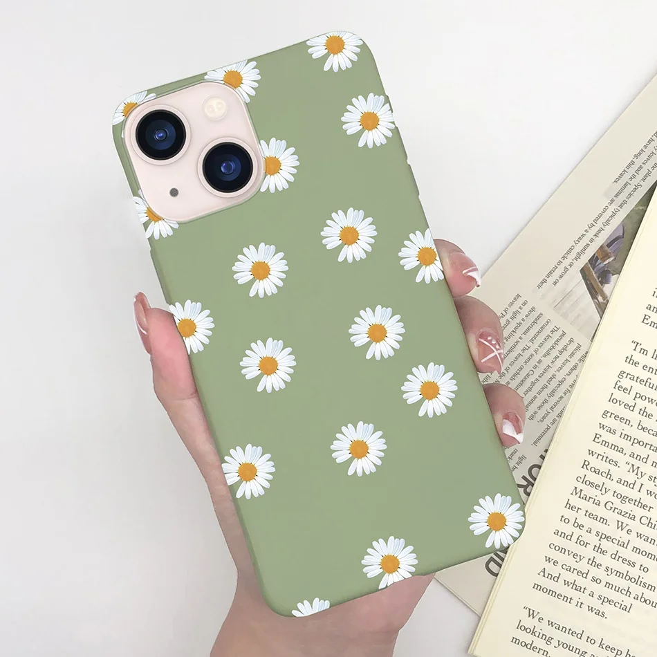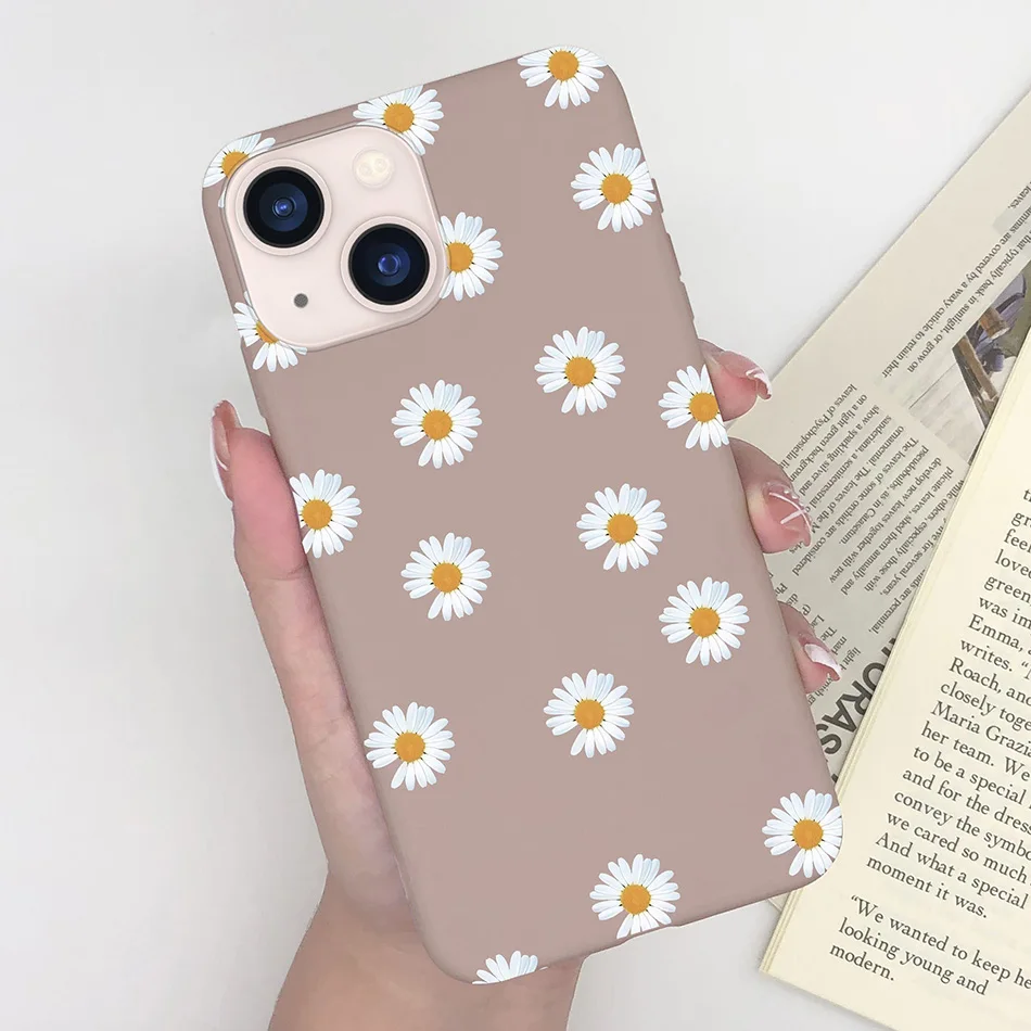 Funda suave y delgada para Apple iPhone 13, carcasa a prueba de golpes con diseño de margaritas y mariposas en forma de corazón para iPhone 13 Mini 13 Pro Max