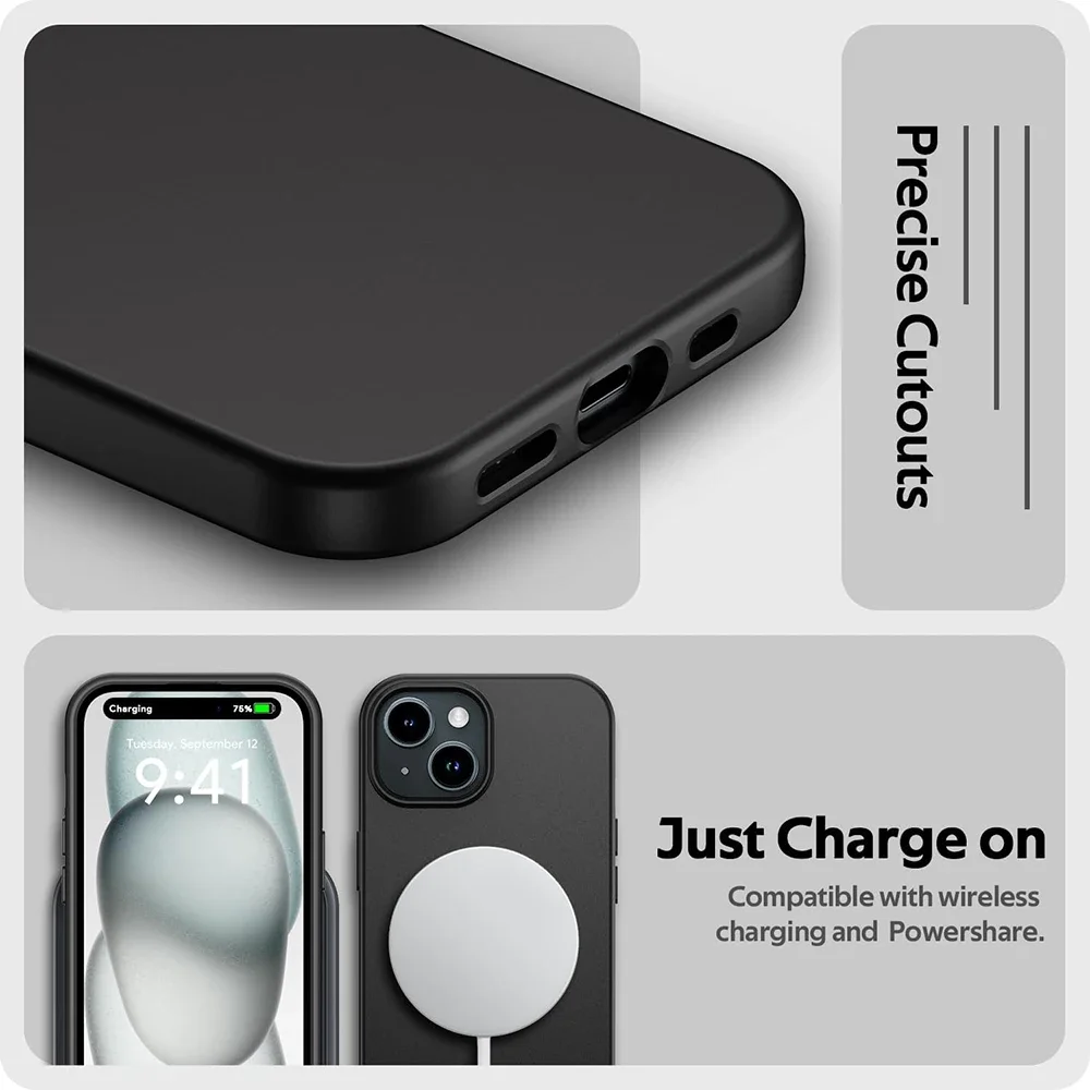 Funda suave de silicona mate de lujo para iPhone 15 14 Plus 13 12 Mini 11 Pro XS Max X XR SE 2 3 7 8 Plus Funda negra sólida ultrafina
