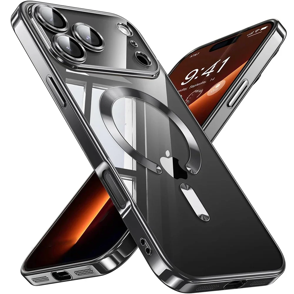 Funda suave de silicona transparente con revestimiento de lujo para iPhone 17 Air 16 15 14 13 12 11 Pro Max, funda de carga inalámbrica Magsafe magnética
