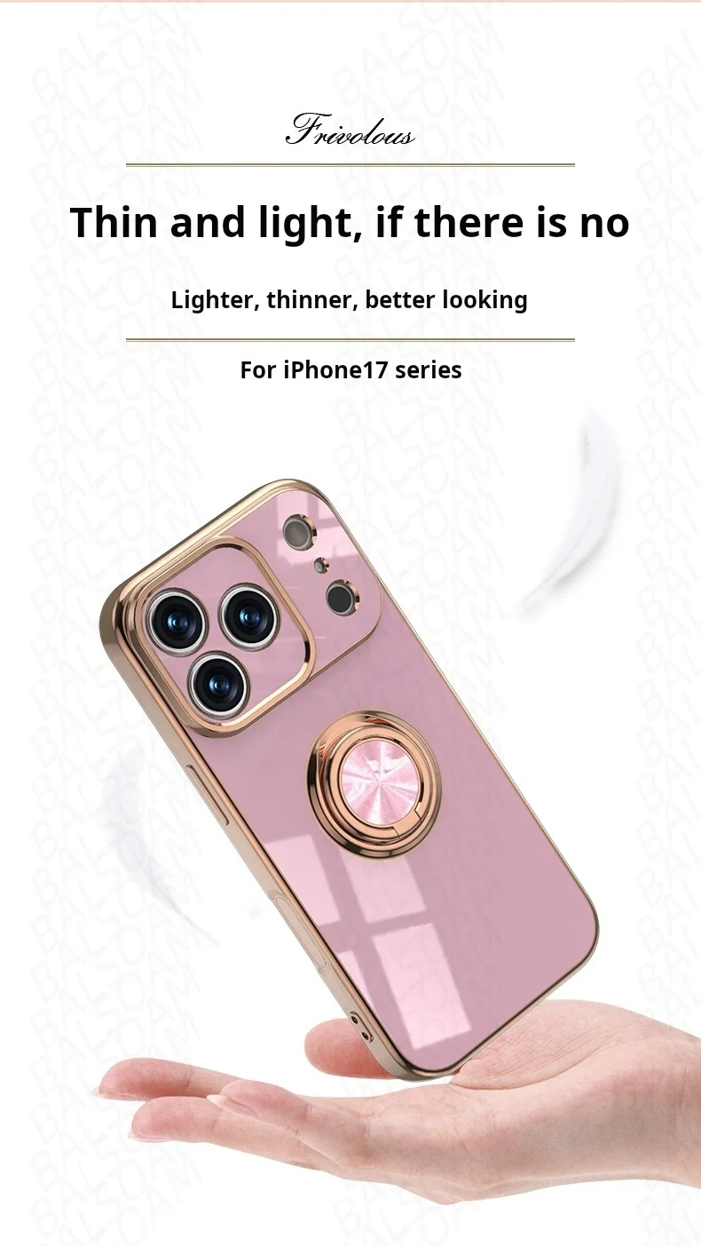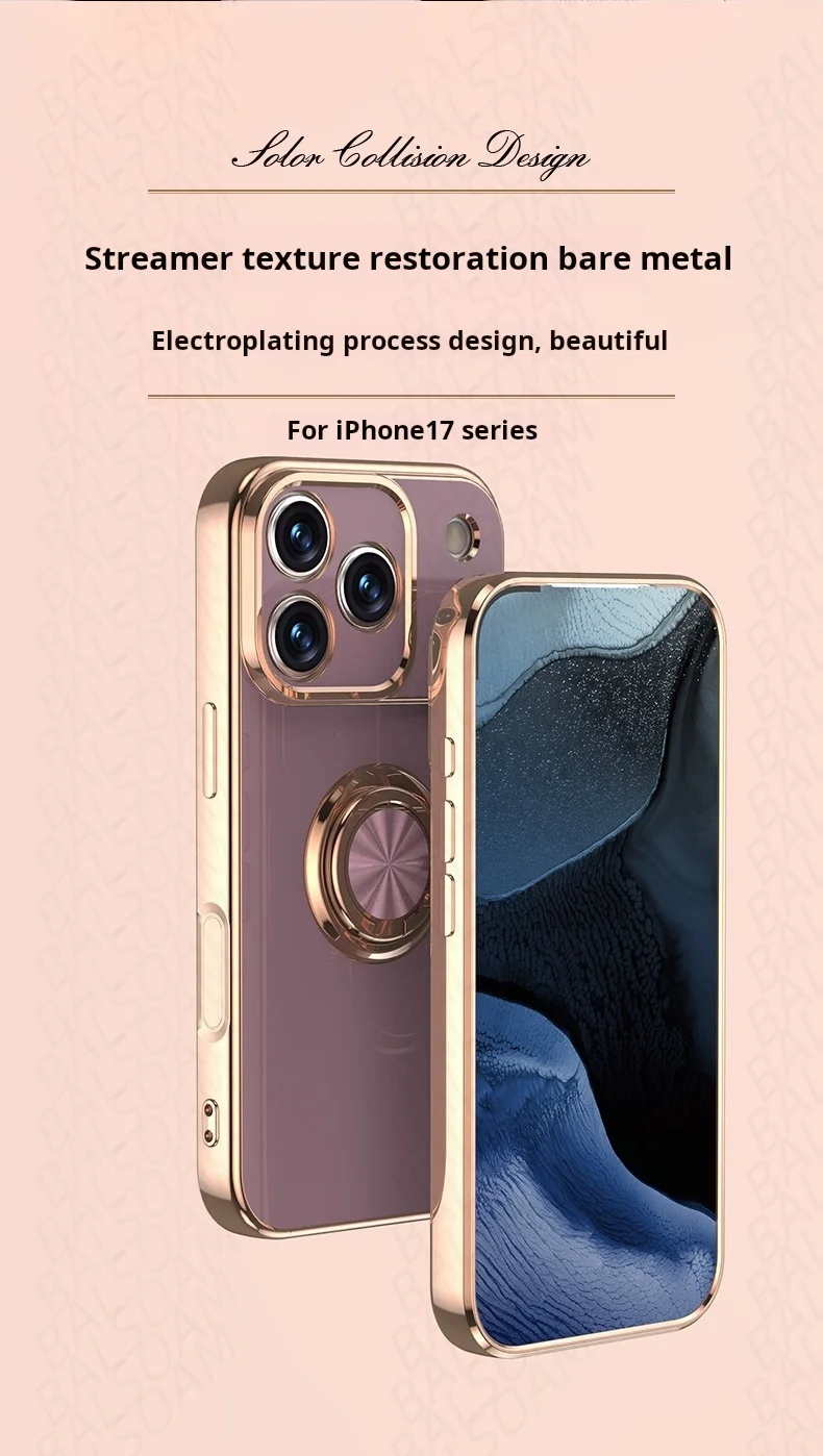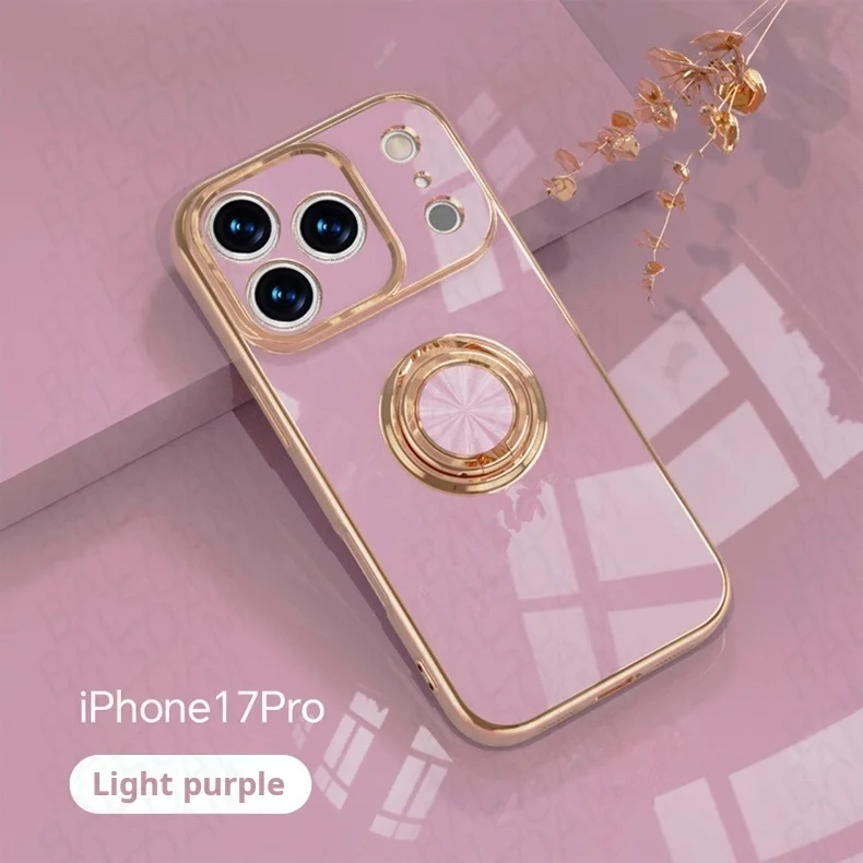 Soporte de anillo de Metal de lujo, cubierta suave para iPhone 17 Air 16 E 15 14 13 12 Mini 11 Pro Xs Max SE XR Plus, funda de silicona chapada