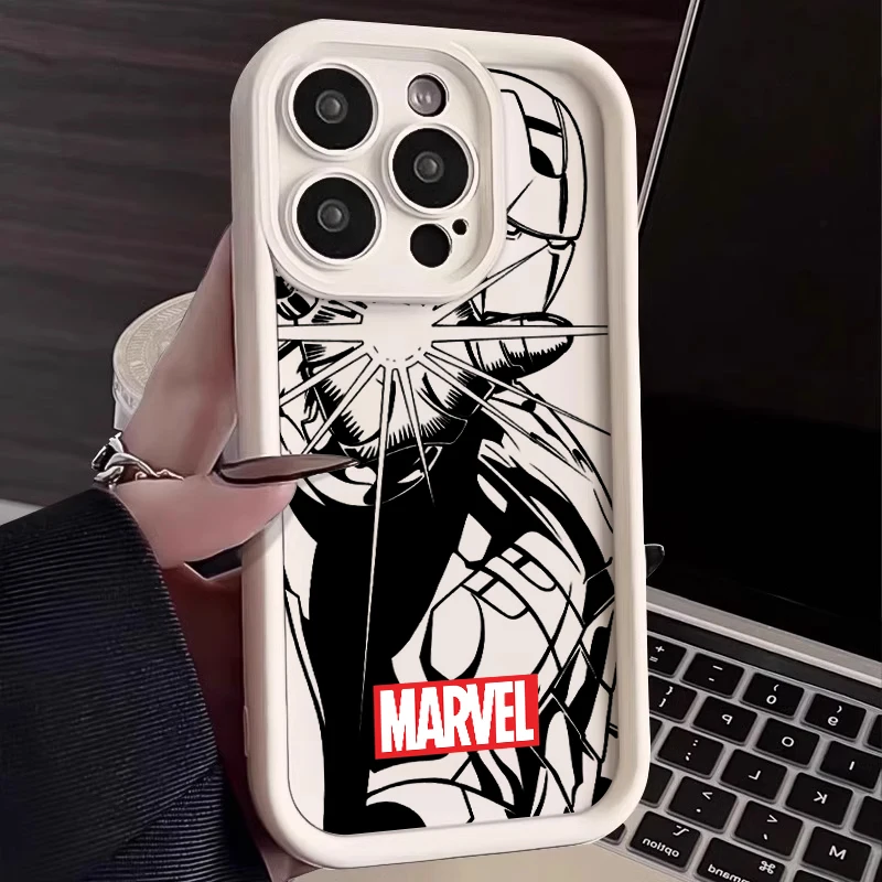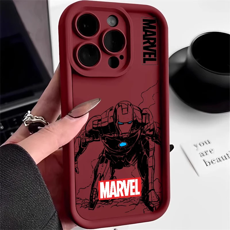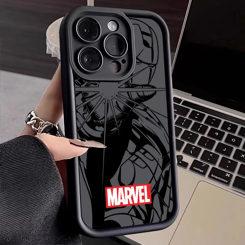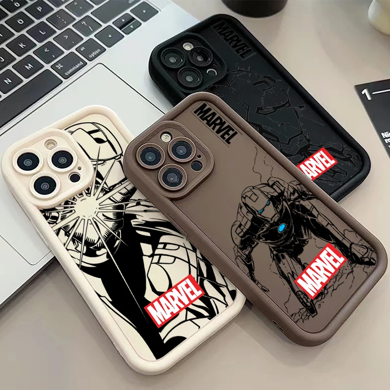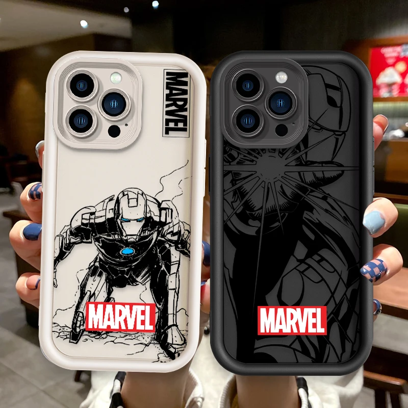 Funda de superhéroe Iron Man Marvel para iPhone de Apple, 15, 14, 13, 12, 11, XS, XR, X, 8, 7 Pro Max Plus, funda de teléfono con escalera de ojos suave