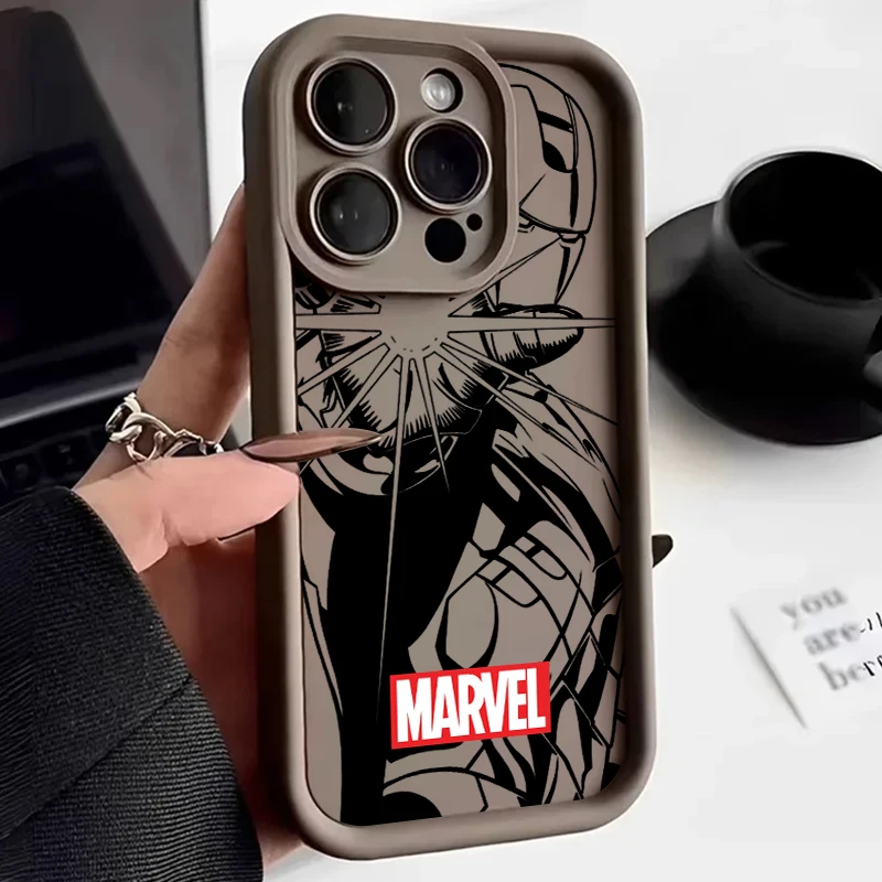 Comprar Funda de superhéroe Iron Man Marvel para iPhone de Apple, 15, 14, 13, 12, 11, XS, XR, X, 8, 7 Pro Max Plus, funda de teléfono con escalera de ojos suave