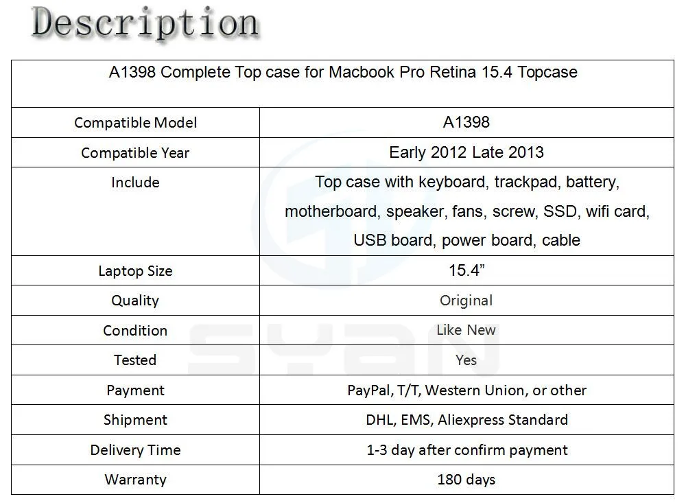 Comprar Funda superior A1398 con teclado, placa base, panel de seguimiento, retroiluminación, altavoz SSD para Macbook Pro Retina 15,4 "US Topcase 2012