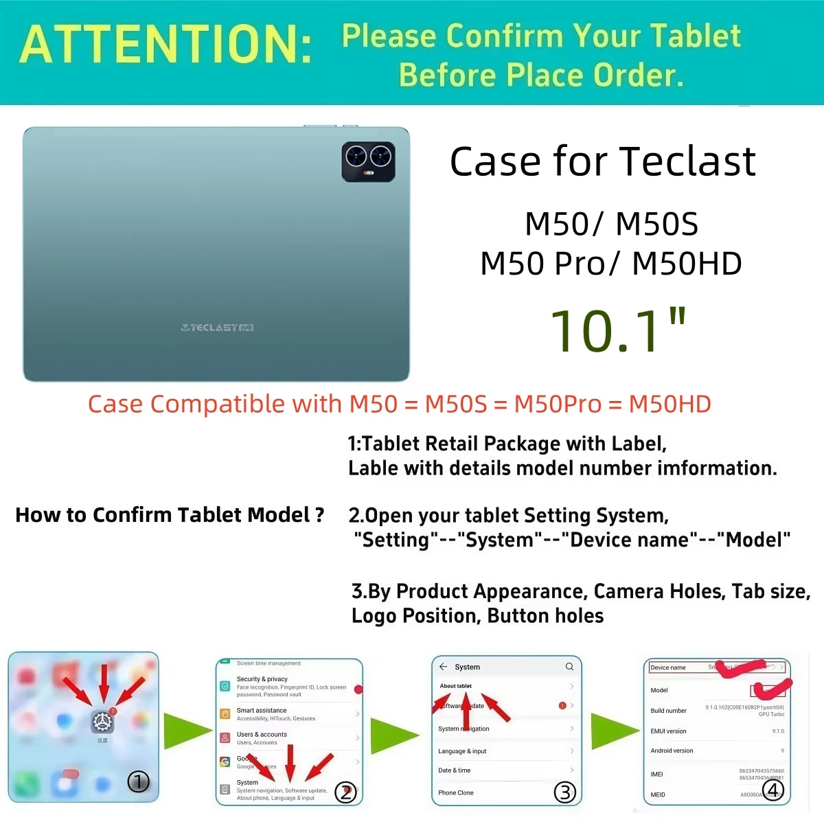 Funda para Teclast M50 M50S M50Pro M50HD 10.1'' 2023