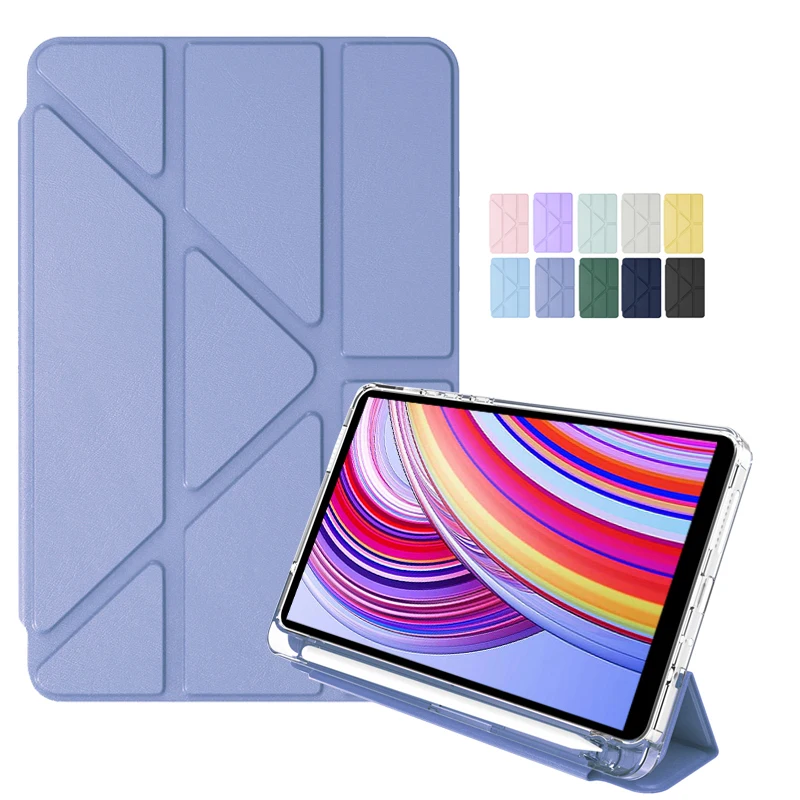 Comprar Funda para tableta Xiaomi Poco Pad 12,1, Funda con portalápices, soporte plegable múltiple, Funda trasera transparente para Funda Redmi Pad Pro 12 1 5g