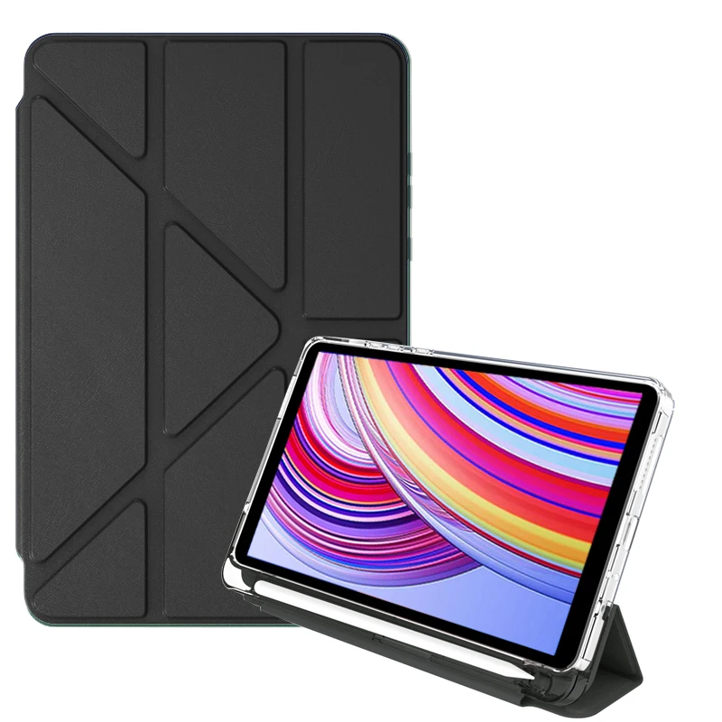 Comprar Funda para tableta Xiaomi Poco Pad 12,1, Funda con portalápices, soporte plegable múltiple, Funda trasera transparente para Funda Redmi Pad Pro 12 1 5g