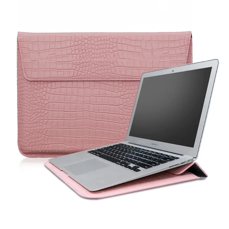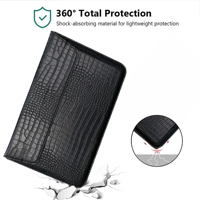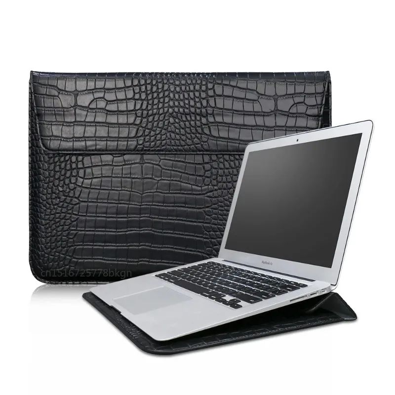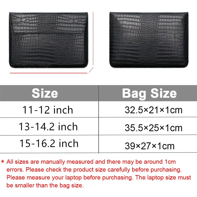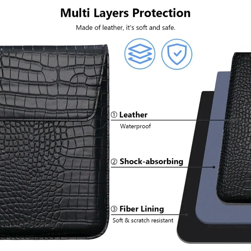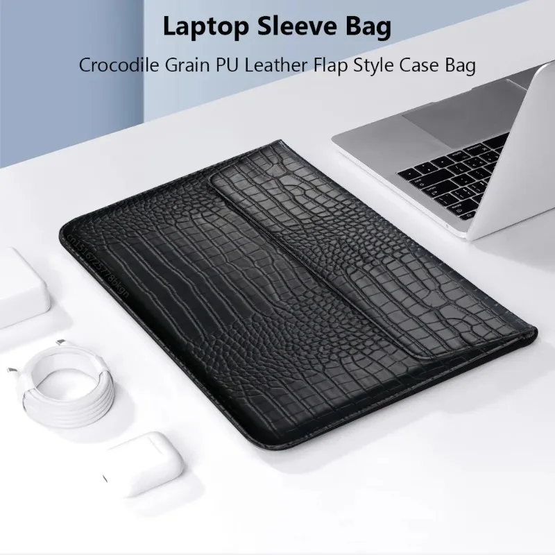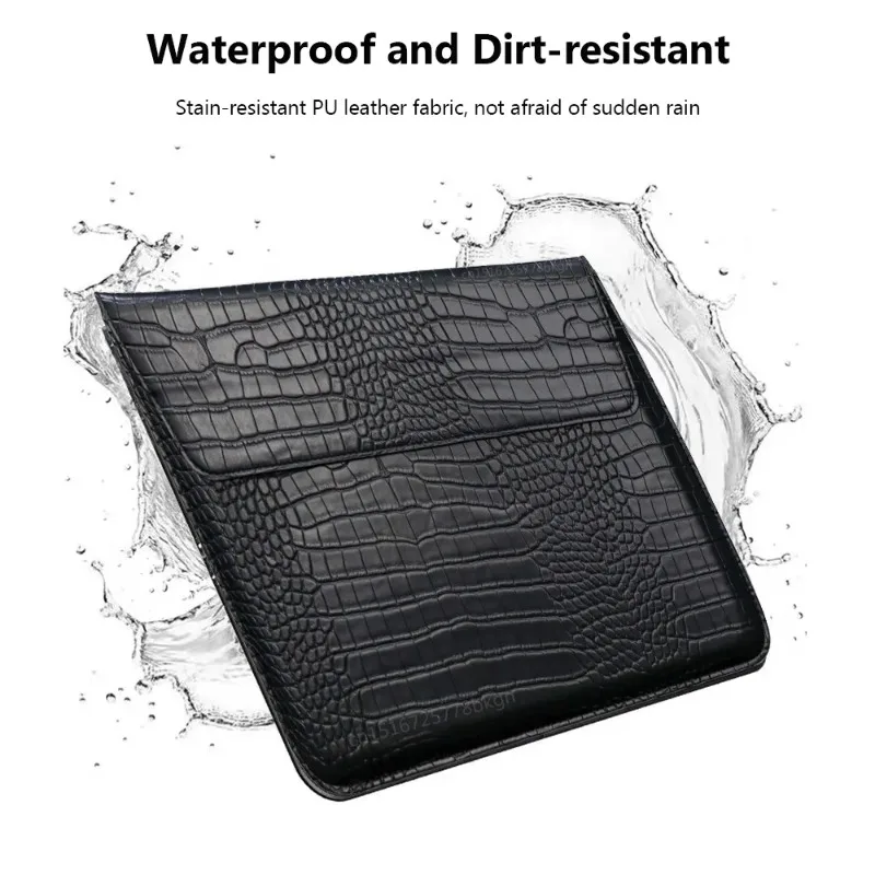 [Ultra delgado y liviano]Hecho de material de cuero PU de grano de cocodrilo resistente al agua y antiarañazos, duradero y delgado para su uso diario, protege su computadora portátil del polvo, golpes leves y rayones accidentales.Puede deslizarse fácilmente en su maletín, mochila u otro bolso.