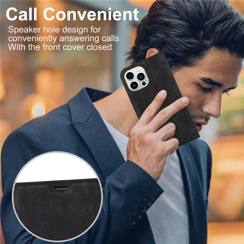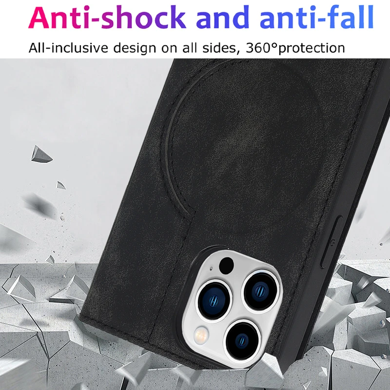Funda con tapa de cuero Macsafe con tarjetero RFID para Magsafe IPhone 14 Plus 13 12 Pro Max 14Pro 13Pro i14 Funda con soporte seguro para Mac