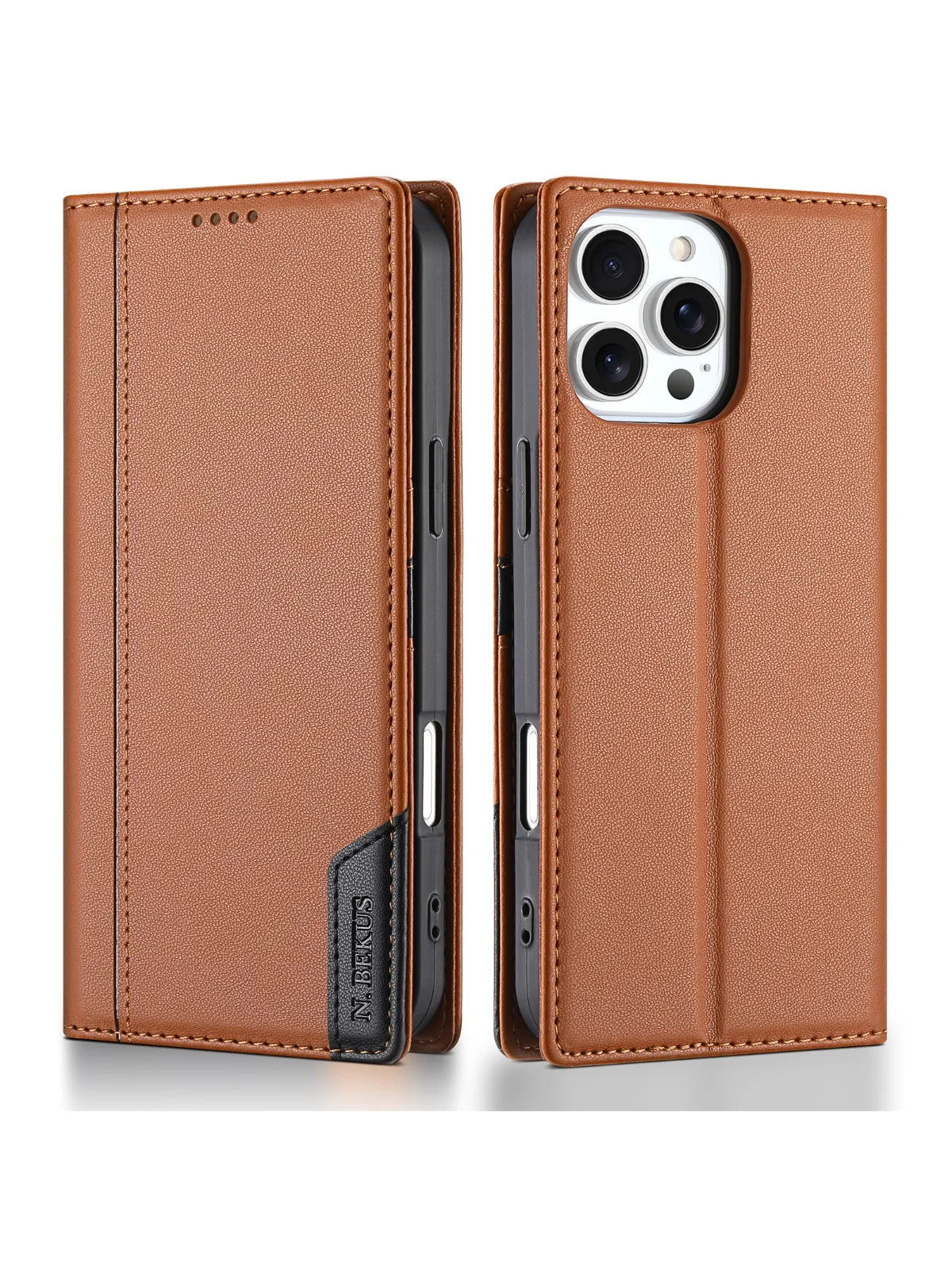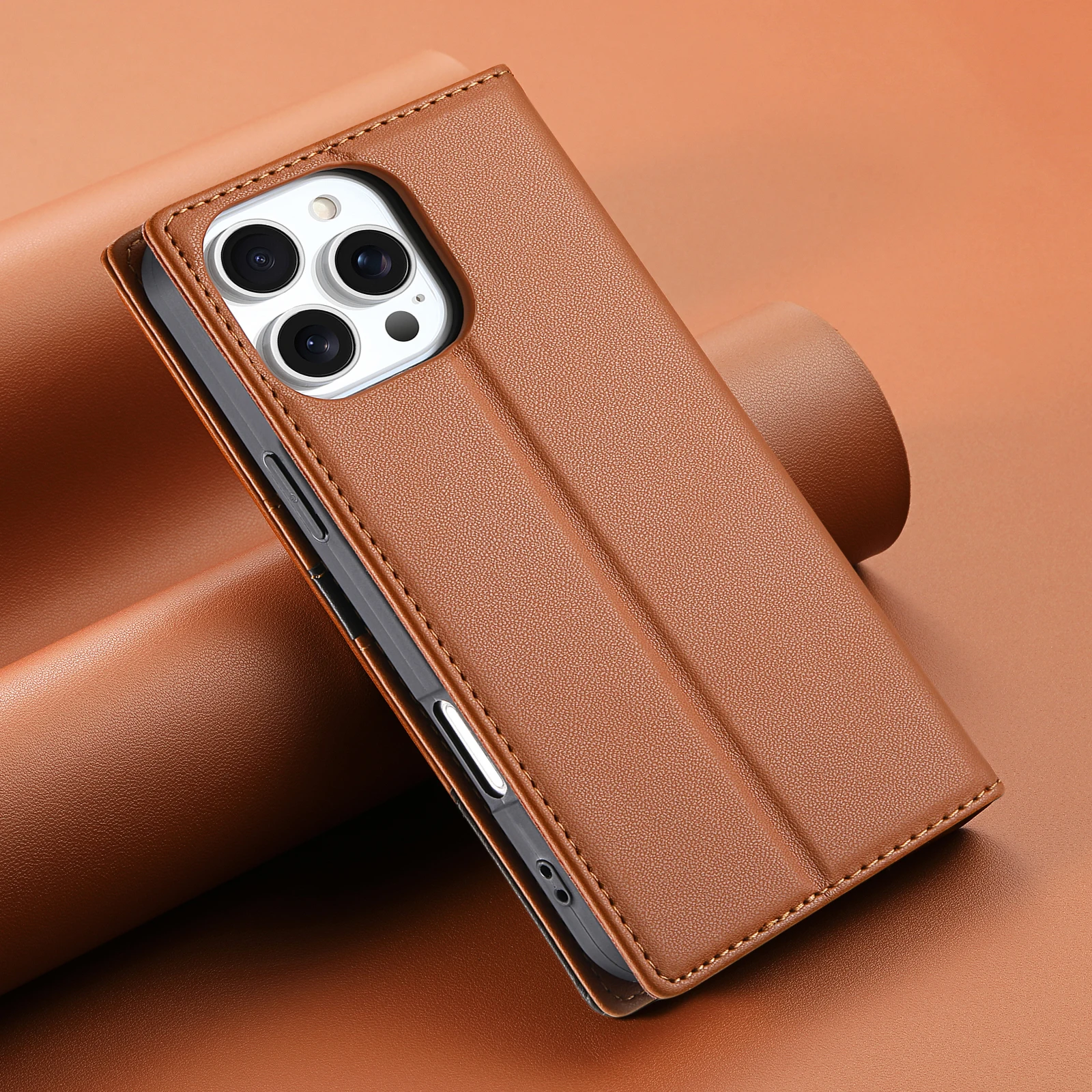 Funda con tapa de cuero tipo billetera Solt con tarjeta magnética fuerte para iPhone 16 Pro Max 17 Plus 16E 15 14 13 12 11 bolsa RFID cubierta a prueba de golpes