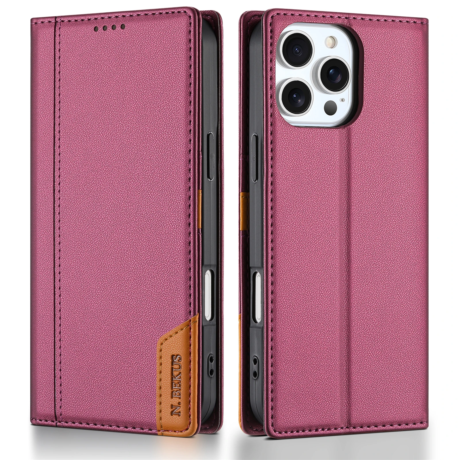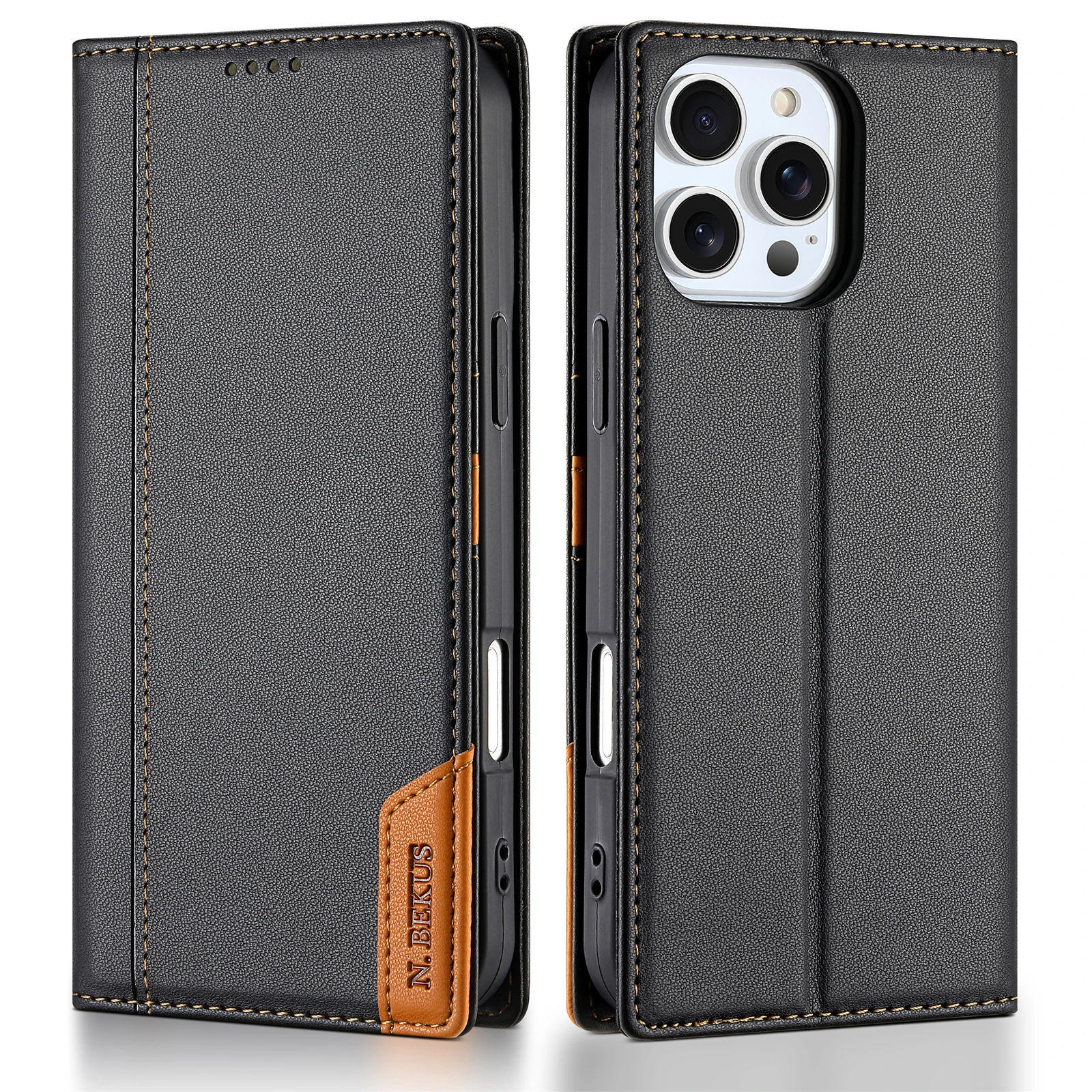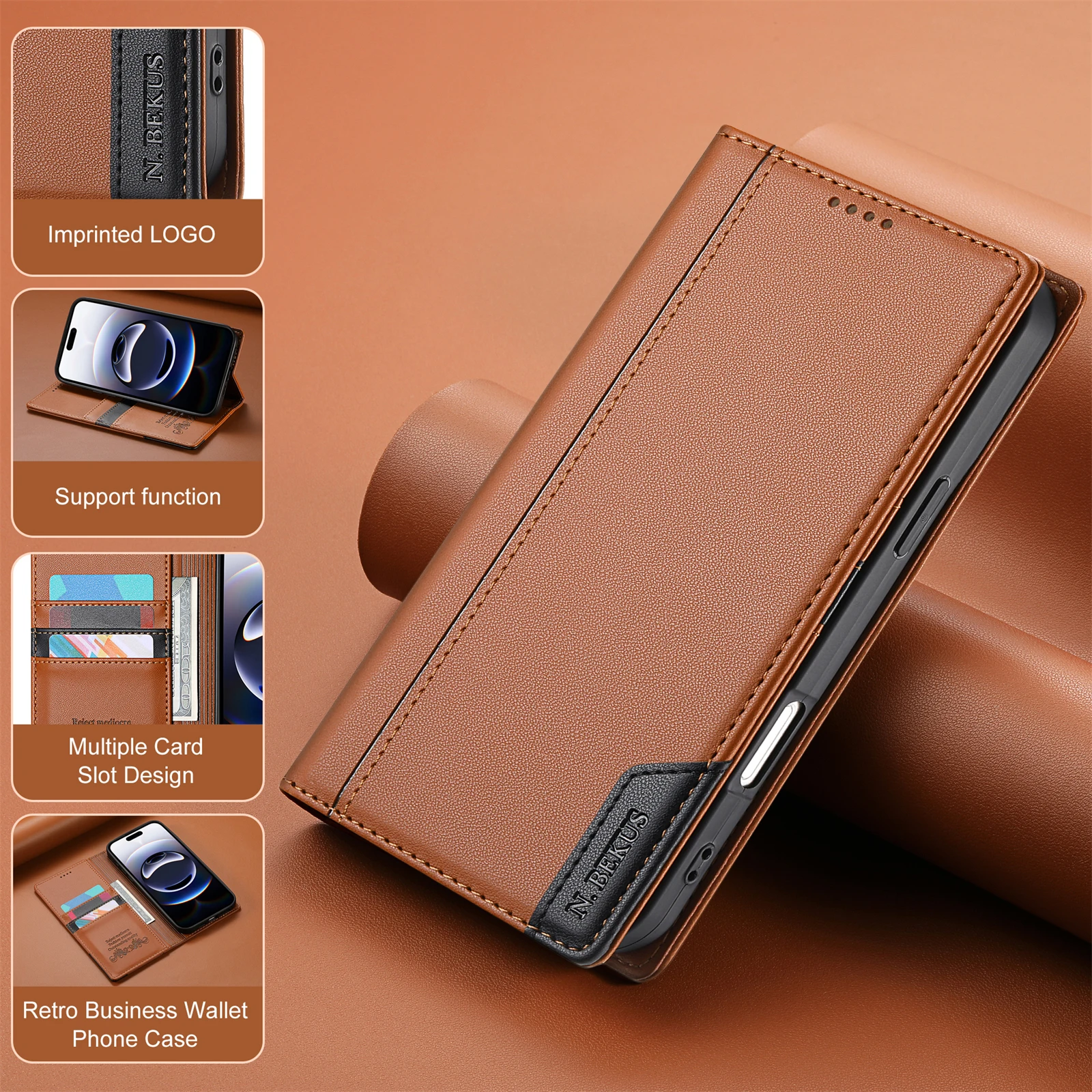 Funda con tapa de cuero para billetera con tarjeta magnética fuerte para iPhone 16 Pro Max 17 Plus 16E 15 14 13 12 11, bolsa RFID, funda a prueba de golpes