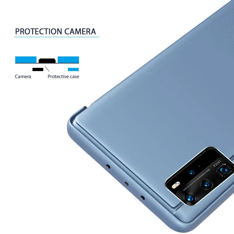 2. Funda abatible de cuero con espejo inteligente, visualización rápida de SMS, llamadas, fecha, hora, etc.