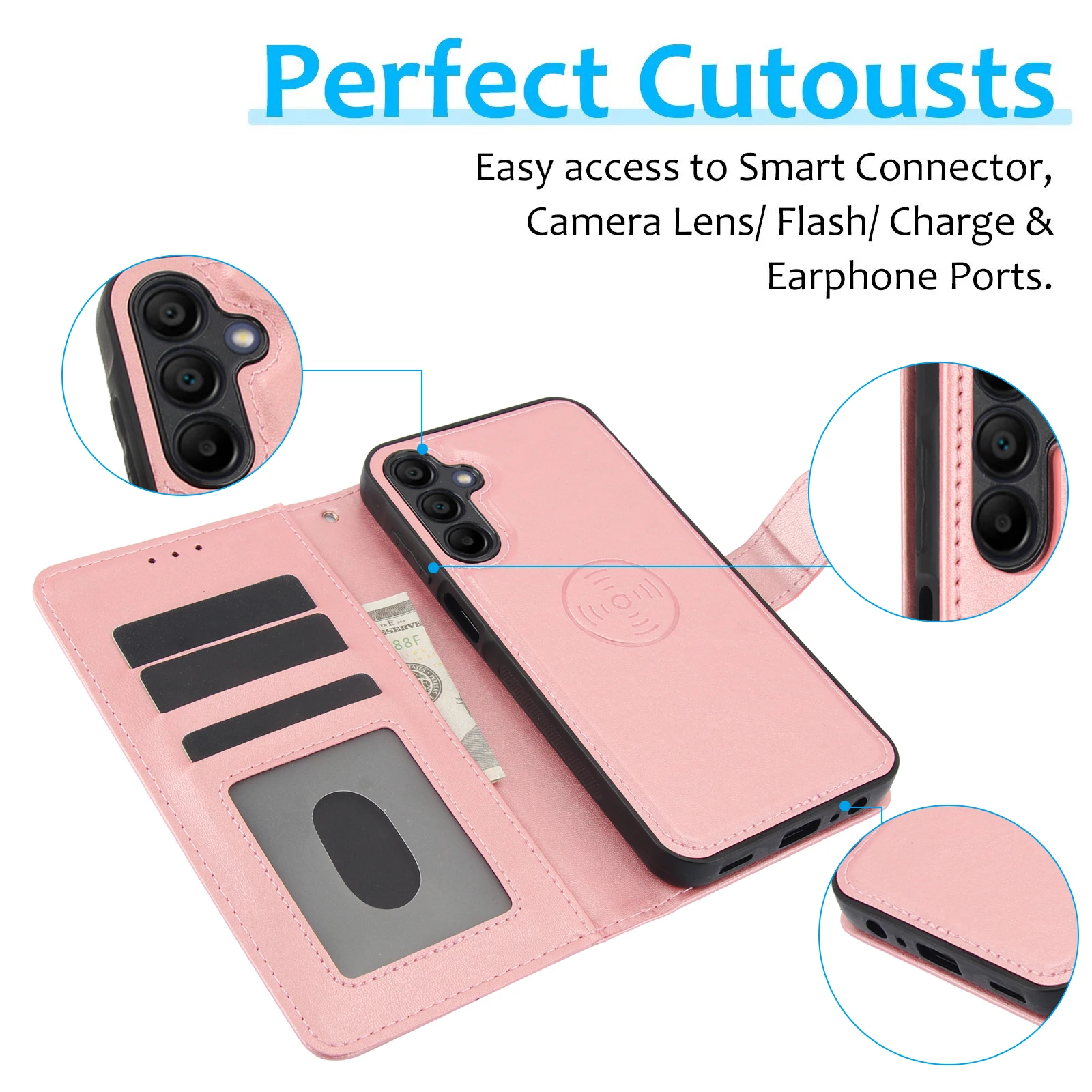 Comprar Funda con tapa magnética de cuero con ranura para tarjetas desmontable 2 en 1 para Samsung Galaxy A55 A15 A16 S25 Ultra S24 Plus S23 FE S22