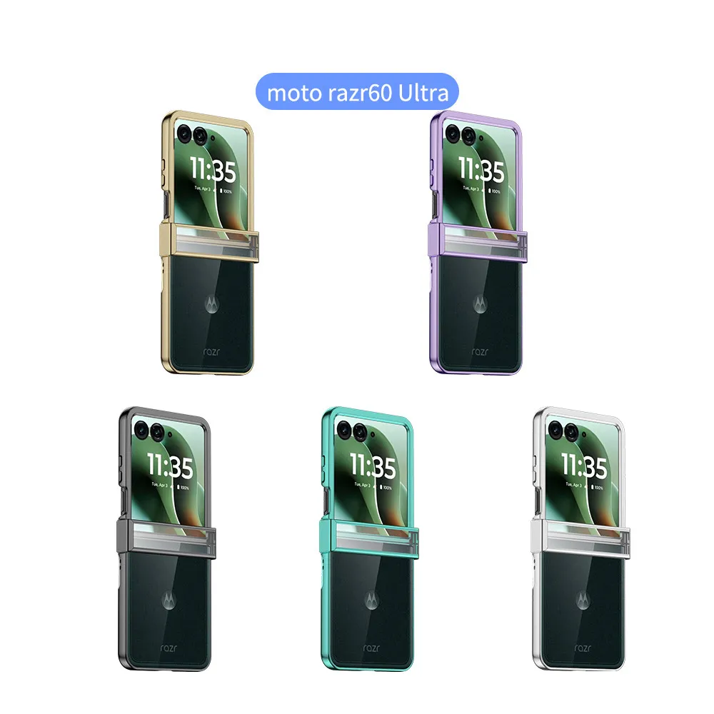 Funda con tapa de PC dura chapada transparente para Motorola Razr 60 Ultra 50 60 Ultra 5G, cubierta protectora de juego de bisagras de 3 piezas de Color sólido - imagen 1