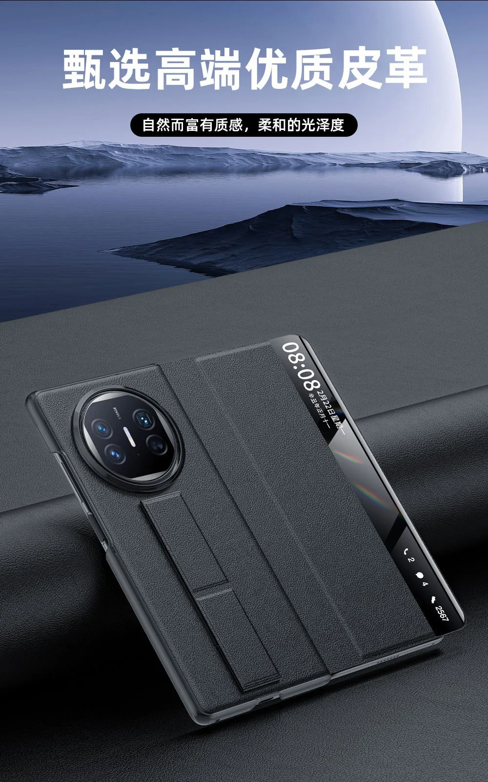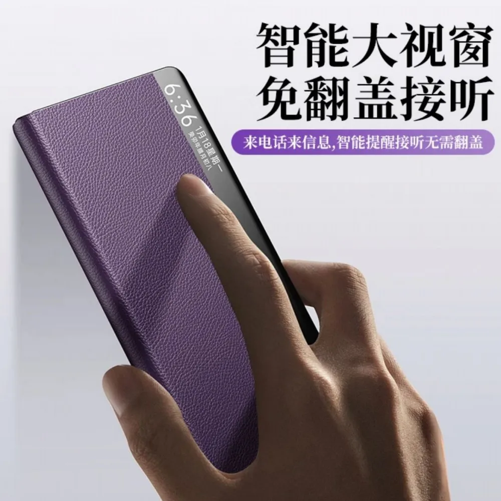 Funda con tapa y soporte de pulsera para HUAWEI Mate X6 X5 X3, Funda de cuero genuino táctil con protección de vista inteligente, Funda Capa para teléfono