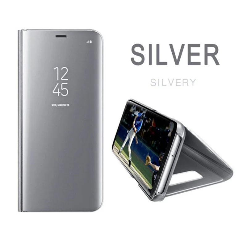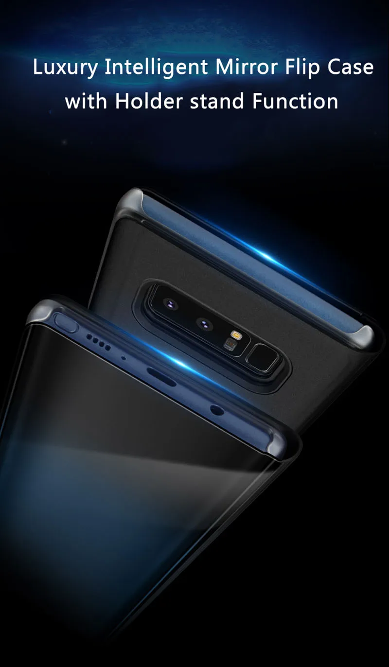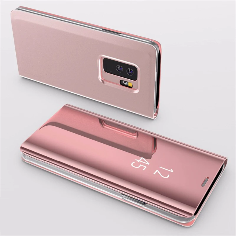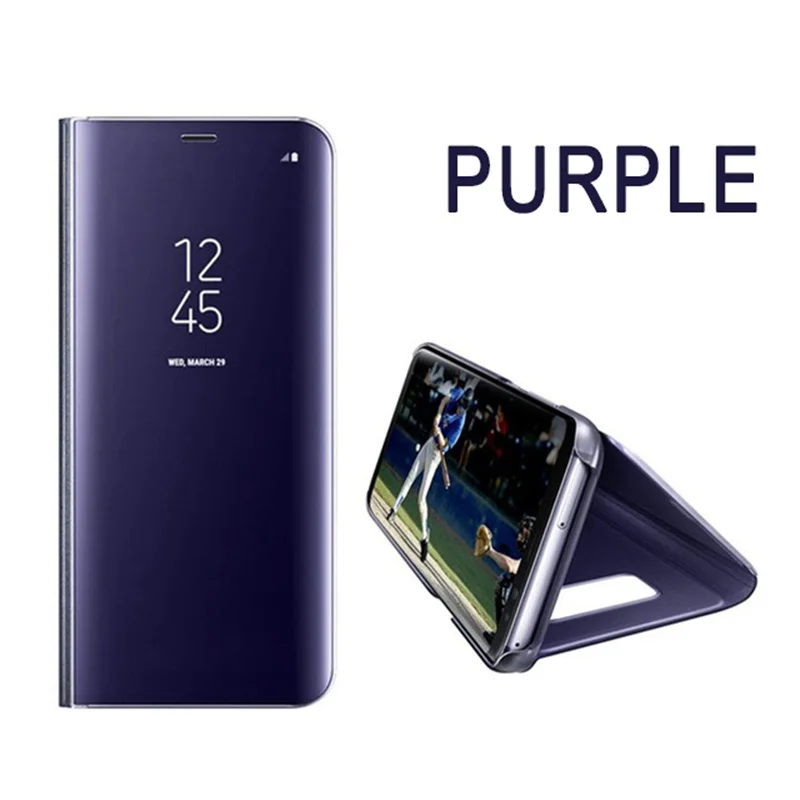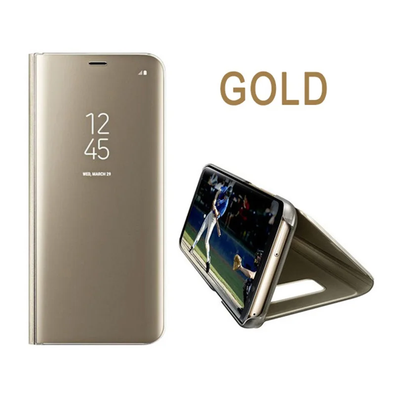 Comprar Funda con tapa y espejo inteligente para Samsung Galaxy S7edge, S8, S9 plus, soporte para ventana, funda protectora para Note 8, 9