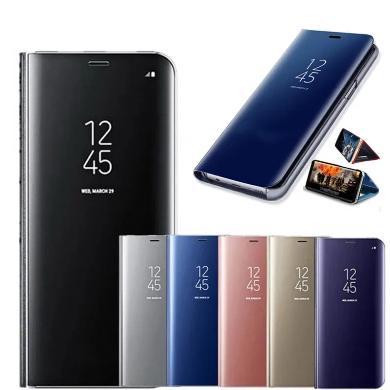 Comprar Funda con tapa y espejo de vista inteligente para Samsung Galaxy S24 + Ultra S23 FE Plus, funda abierta con soporte plegable a prueba de golpes