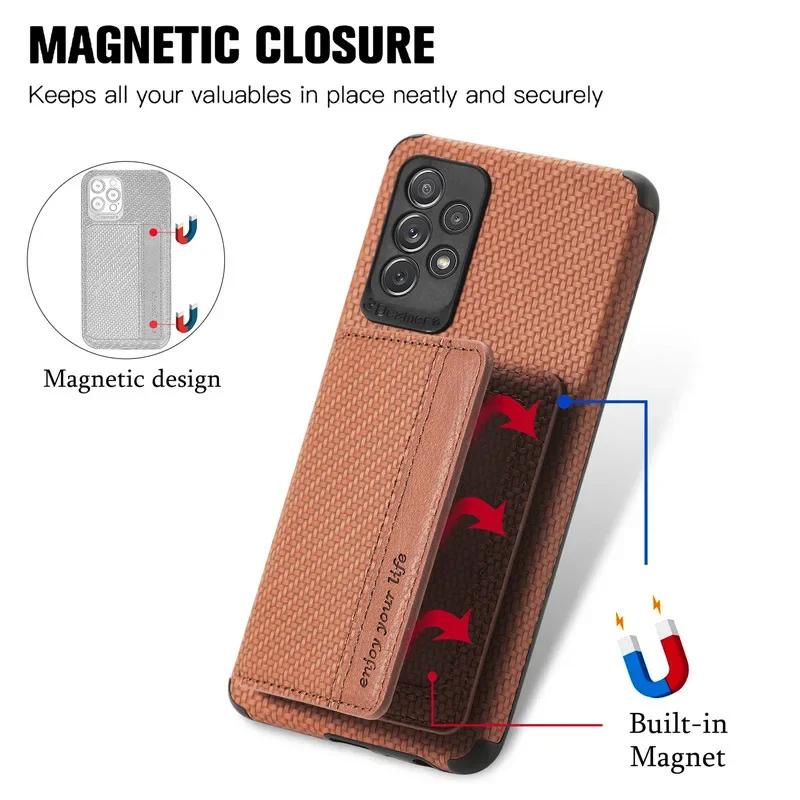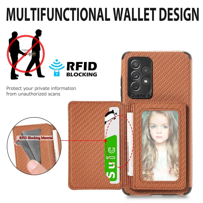 Funda con tarjetero tipo billetera de cuero magnético RFID de fibra de carbono para Samsung Galaxy S22 Plus S21 S23 S24 Ultra S20 Fe Note 20