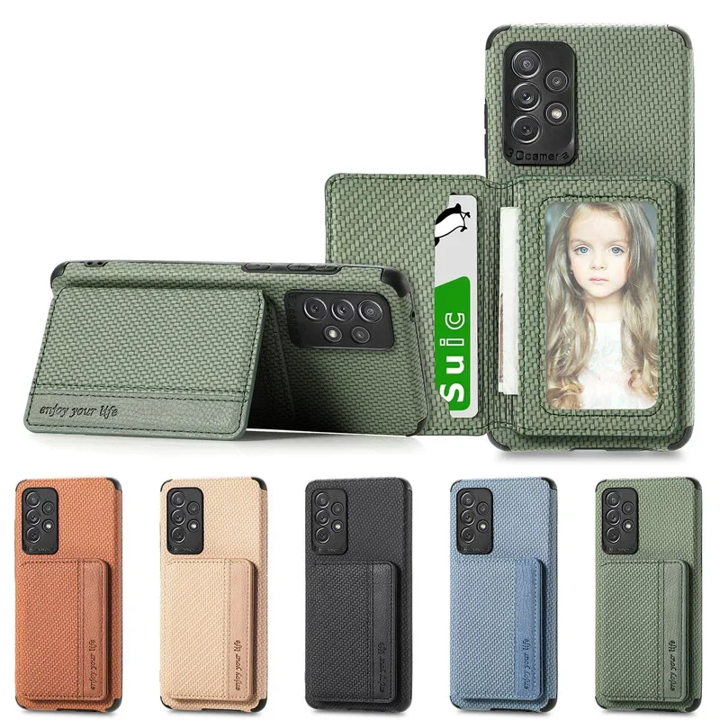 Funda con tarjetero tipo billetera de cuero magnético RFID de fibra de carbono para Samsung Galaxy S22 Plus S21 S23 S24 Ultra S20 Fe Note 20