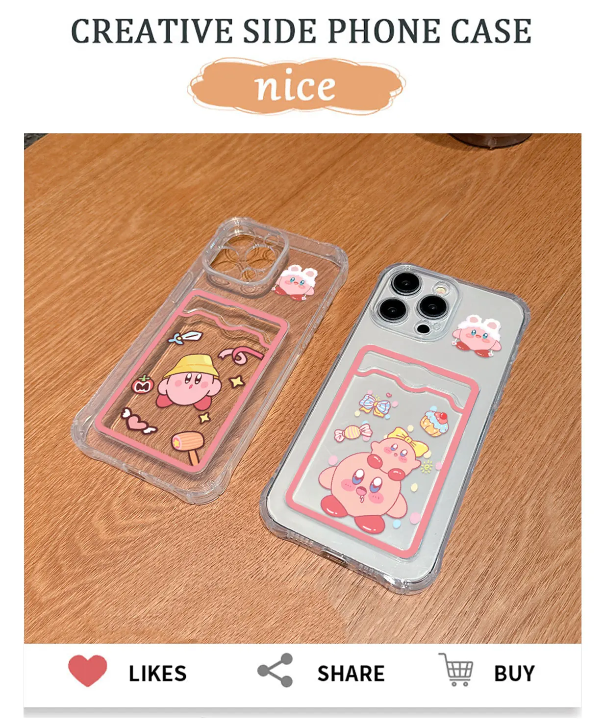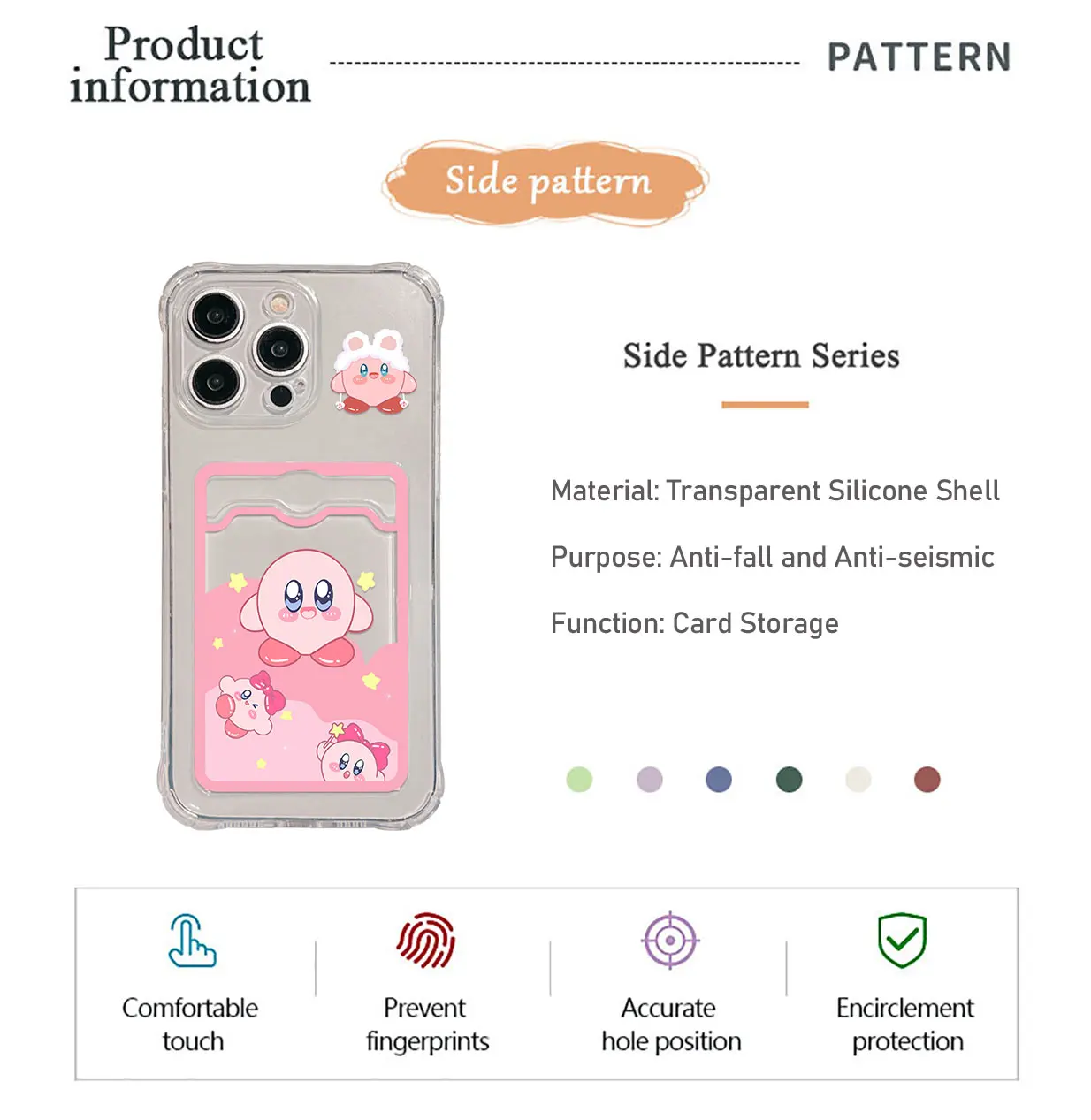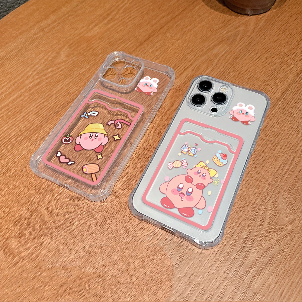 Funda con tarjetero de Kirbys rosa de anime bonito para iPhone 15 14 13 12 11 Mini Pro Max X XR XSMax 6S 6 7 8 Plus SE20 cubierta transparente anticaída