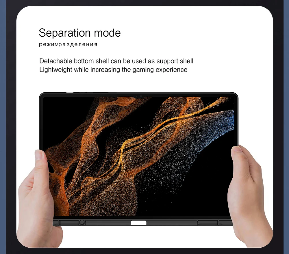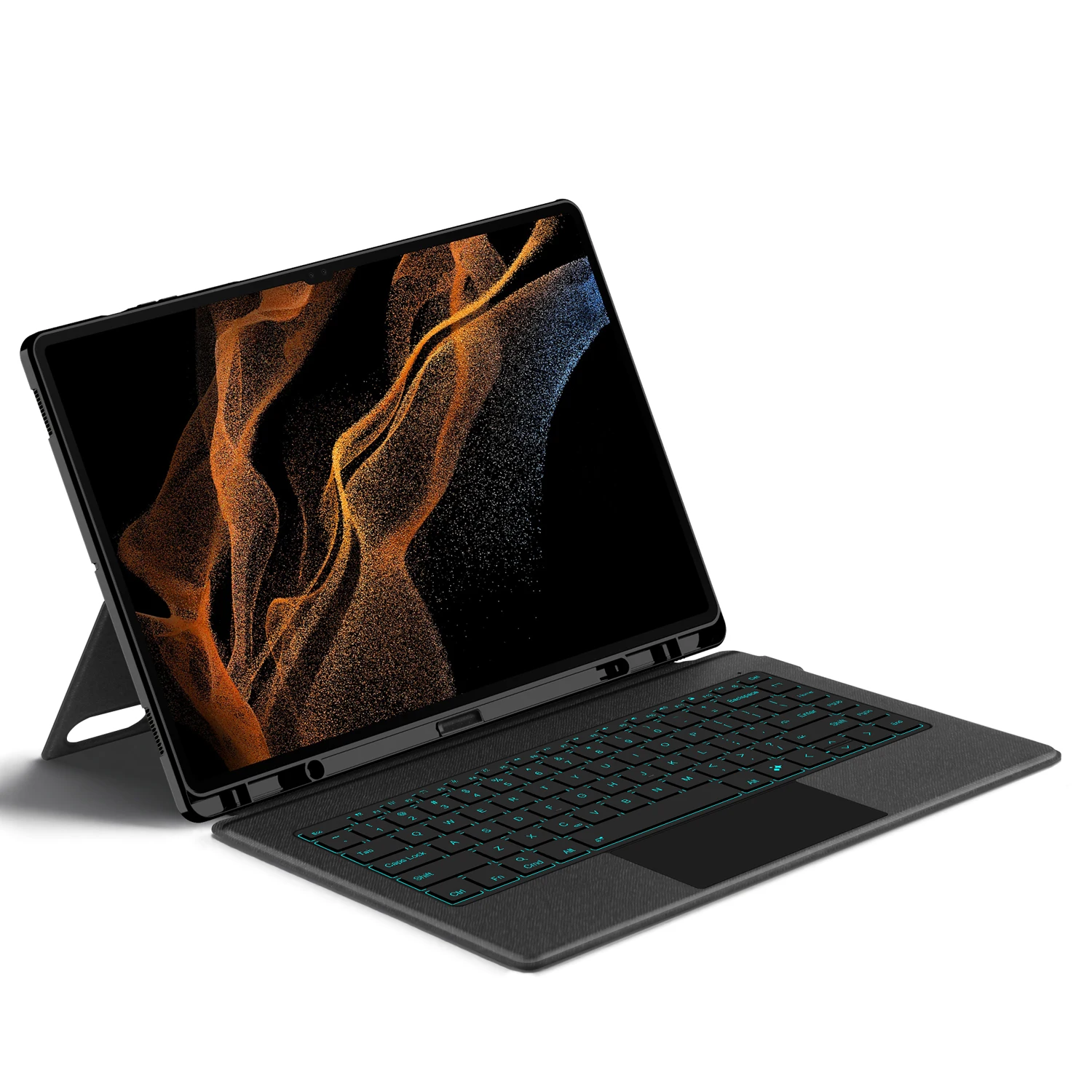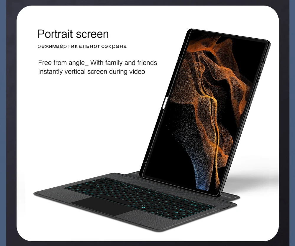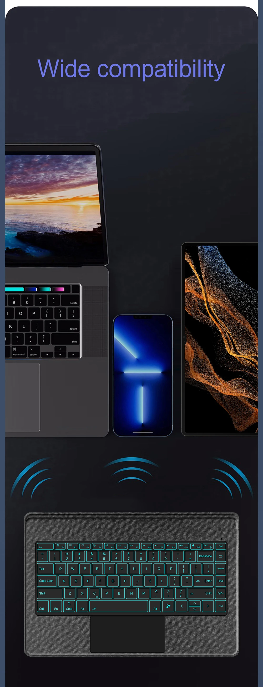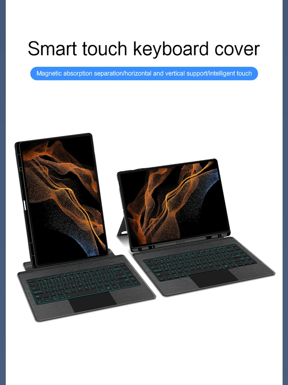 Esta es una funda para teclado desmontable, funda protectora de TPU suave, que puede proteger eficazmente su tableta.El teclado y la funda protectora se pueden separar. Teclado con retroiluminación y TouchPad.