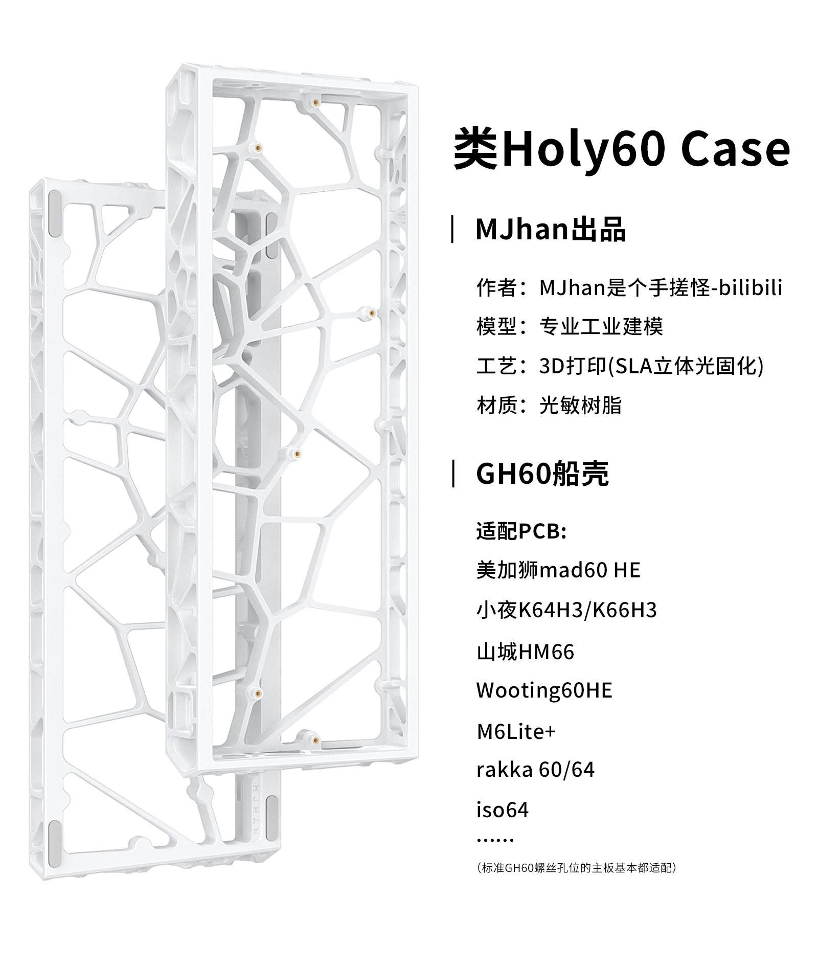 Funda para teclado GH60, carcasa hueca de resina, impresión 3D personalizada, funda hueca Holy60, estilo cinta, accesorios para teclados con carcasa hueca