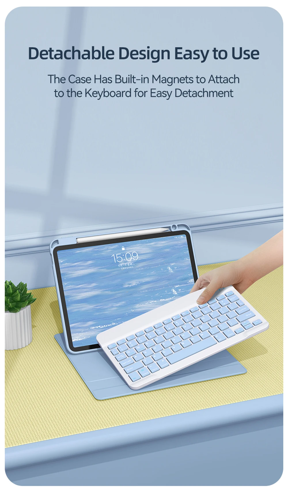 El estuche tiene imanes incorporados para fijar al teclado y desmontarlo fácilmente.