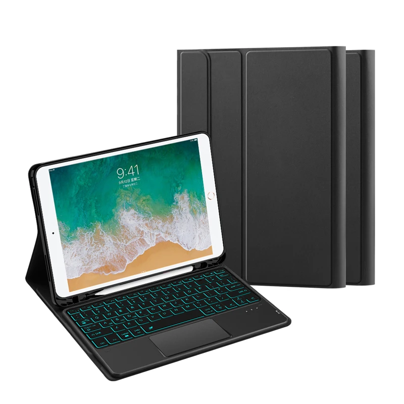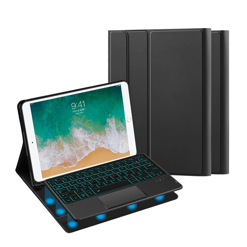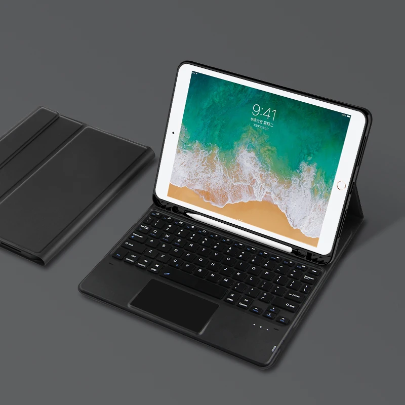 HUWEI es adecuado para protectores de teclado con retroiluminación táctil de iPad (se pueden seleccionar sin retroiluminación o sin tacto). Este protector de teclado viene con una ranura para lápiz para guardar su lápiz, lo que le permite desmontar el teclado y usar el protector por separado.¡Puede soportar la tableta, lo que le facilita su uso para el trabajo y el entretenimiento!