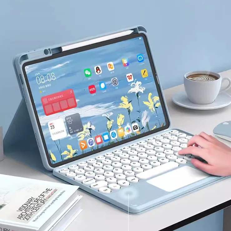 Funda con teclado para IPad Mini 2024 Mini 7 Air 5 4 3 Air2 1 9,7 5 6th 10th 10,9 10,2 9th 8th 7th Pro 11 2022 Funda de cuero delgada