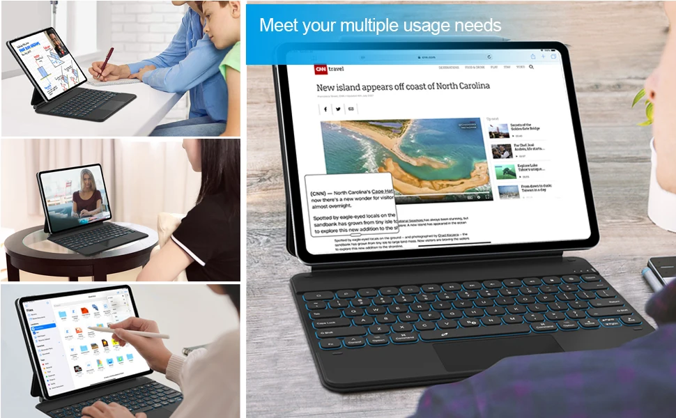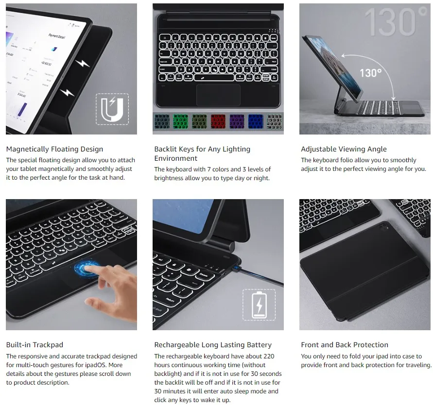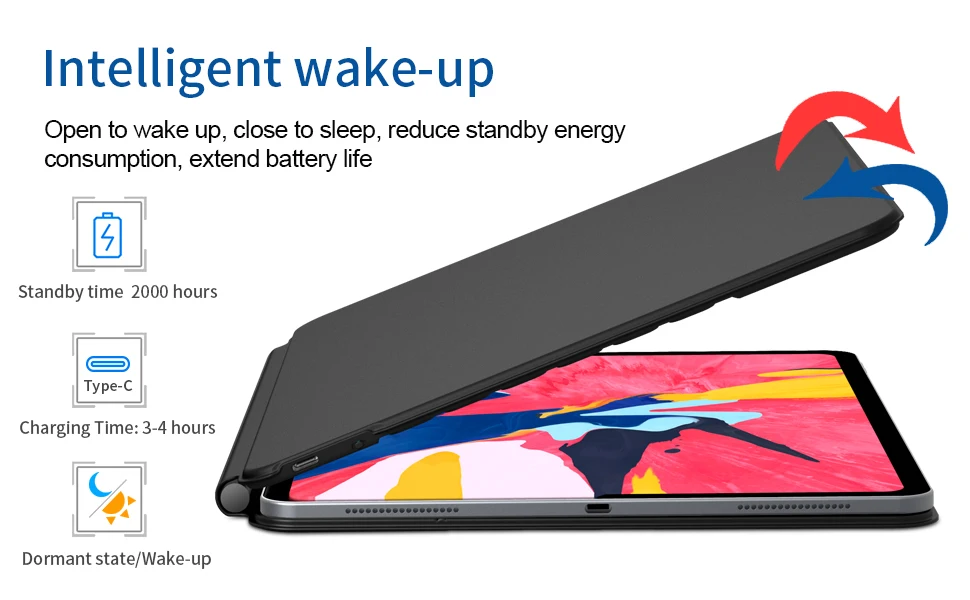 Cierra el teclado y duerme automáticamente, ahorro de energía inteligente para extender la vida útil de la batería del iPad.