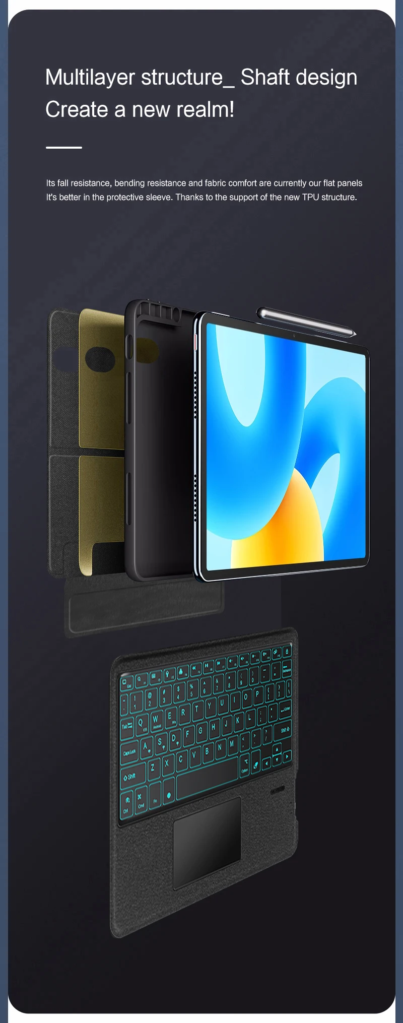 Buenos materiales, buen soporte en la parte posterior de la tableta, cómodo, hace que la tableta sea muy pesada, los botones de volumen son súper incómodos y difíciles de presionar.