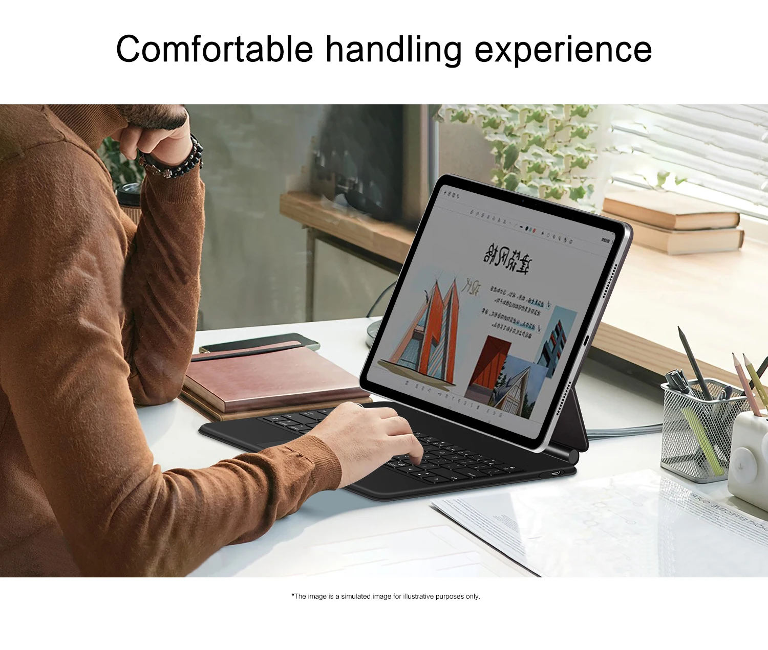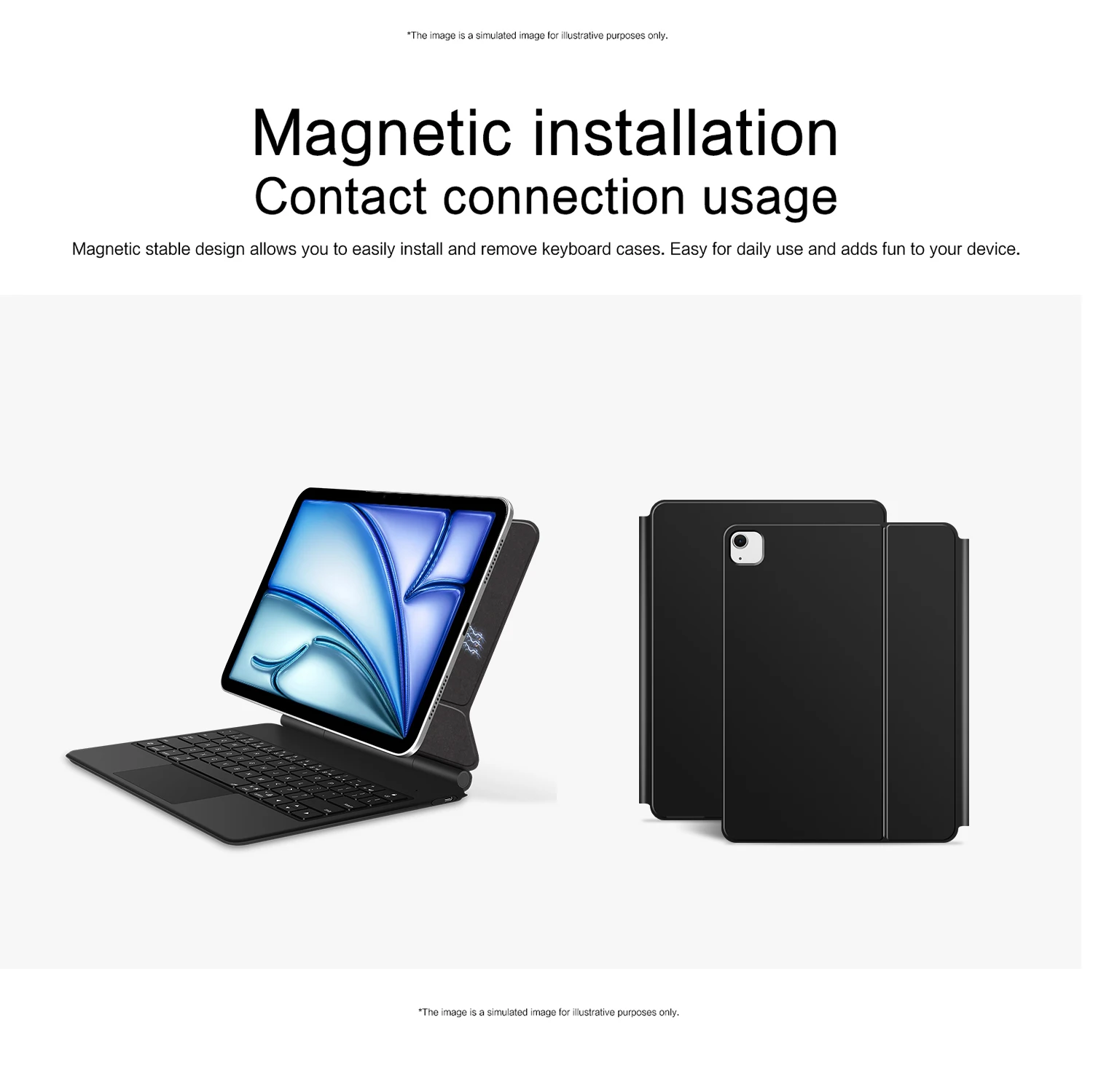 1. ¡Ya no hay conexión de cable de datos ni emparejamiento Bluetooth para disfrutar de la comodidad de conectar y llevar!Con un diseño de conector PIN, puede conectar instantáneamente la tableta al teclado instalando la tableta en el teclado en lugar de emparejamiento Bluetooth adicional, lo que garantiza una transmisión más estable y conveniente, brindando una experiencia de escritura más estable y receptiva.