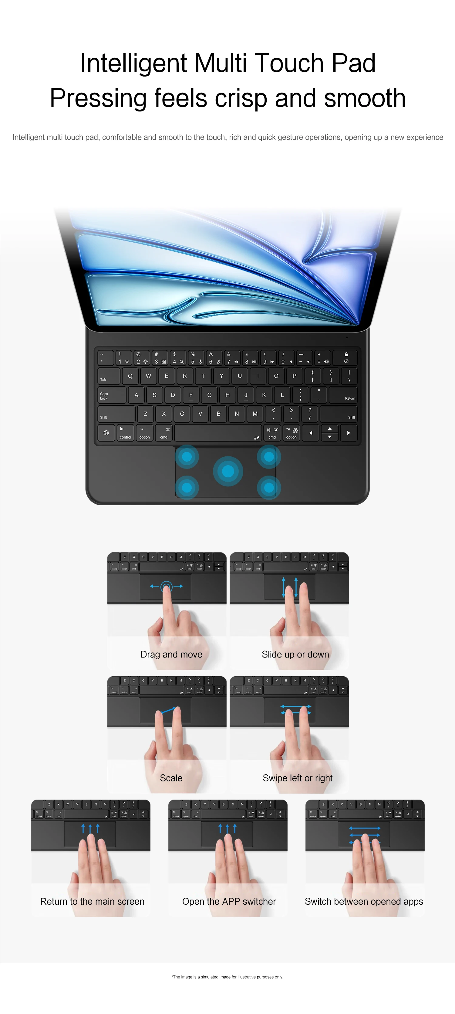 Esta es una conexión de pin Pogo para iPad, no requiere emparejamiento Bluetooth, no necesita batería, alimentación por iPad, carga inversa del teclado.
