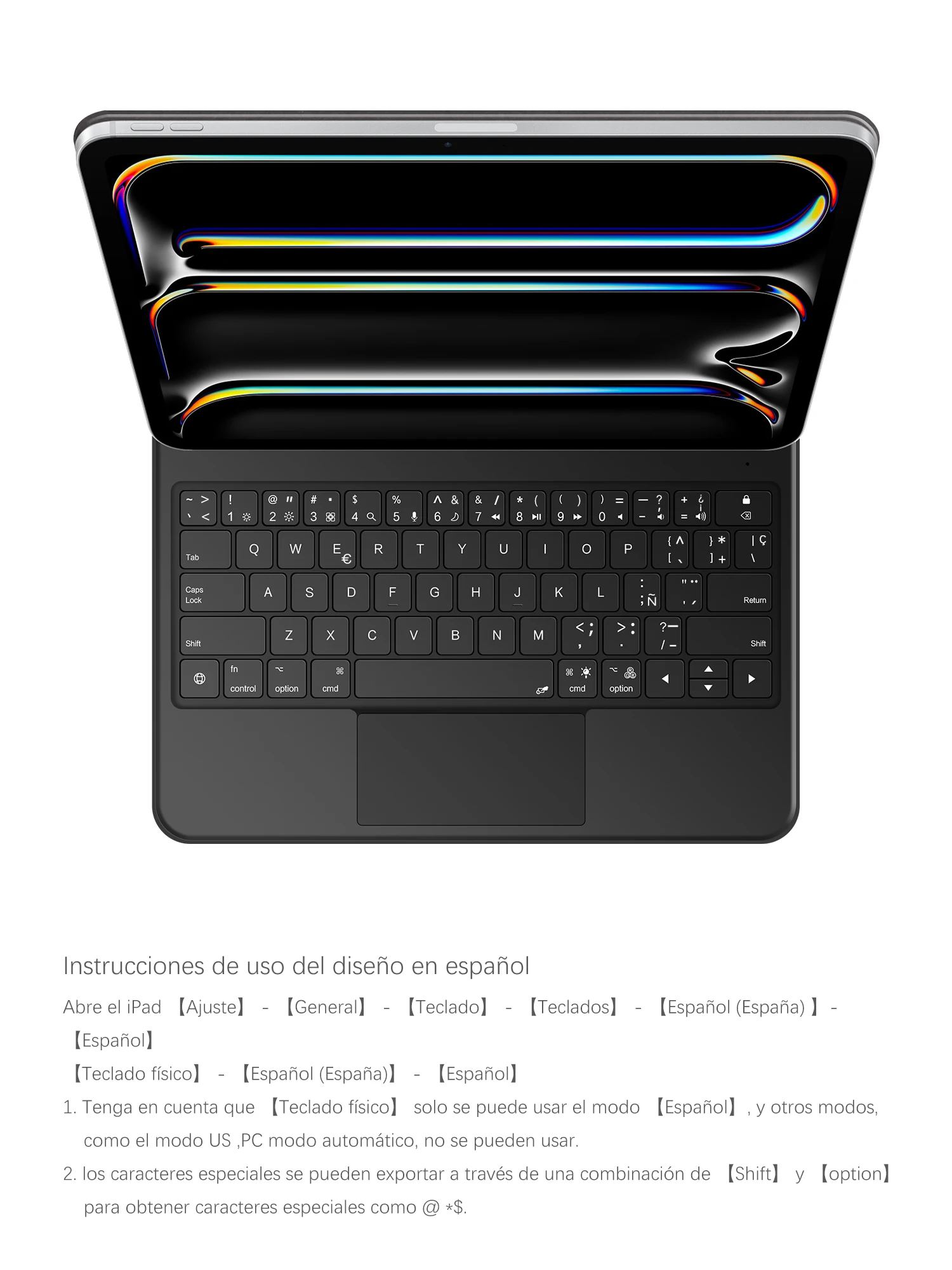 El núcleo del teclado es predeterminado en inglés y los caracteres grabados en el teclado son solo una pantalla Surface.Entonces, en algunos países, incluso si se cambia el método de entrada, los símbolos especiales no corren necesariamente con el diseño de la función del teclado (puede mantener presionada la combinación Shift).Si le importa, ¡no compre!.