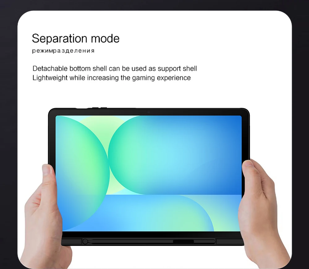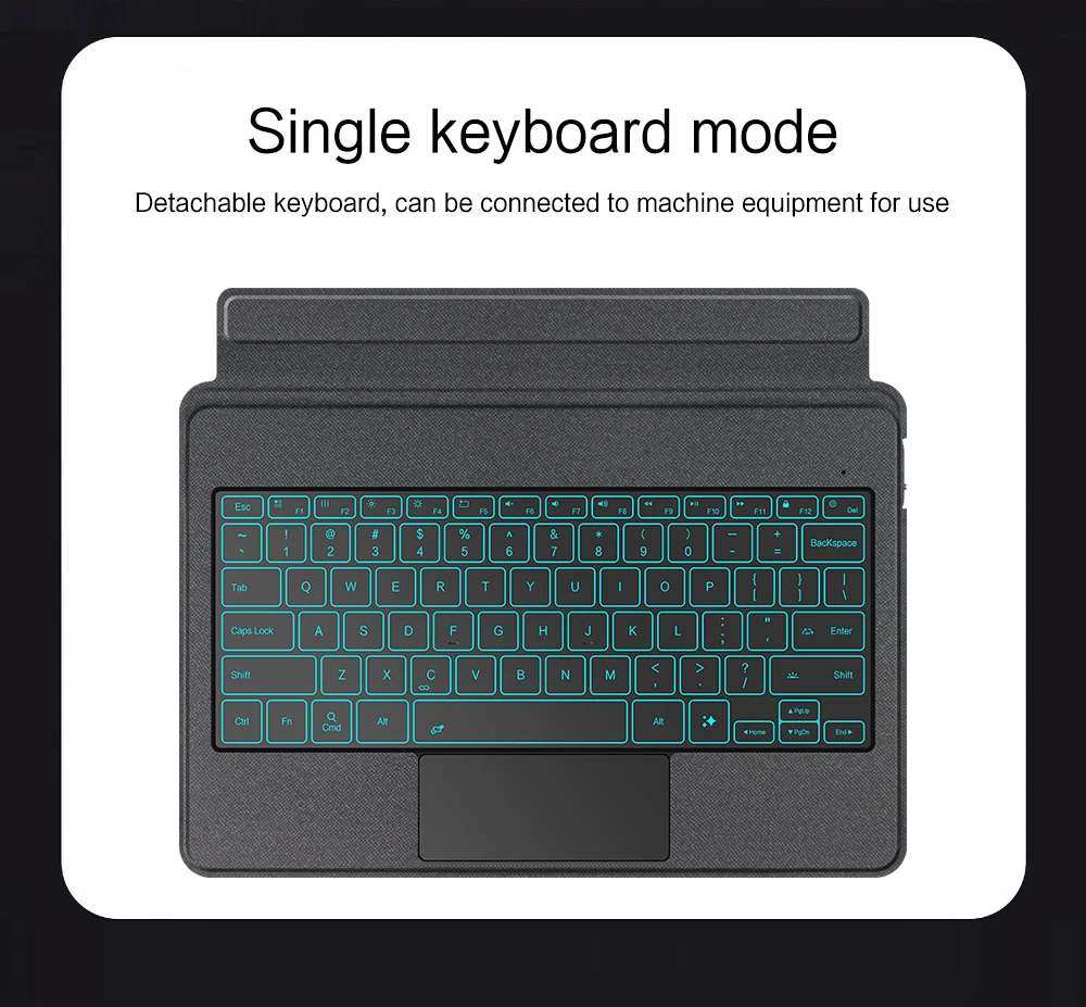Esta es una funda para teclado desmontable, funda protectora de TPU suave, que puede proteger eficazmente su tableta.El teclado y la funda protectora se pueden separar. Teclado con retroiluminación y TouchPad.
