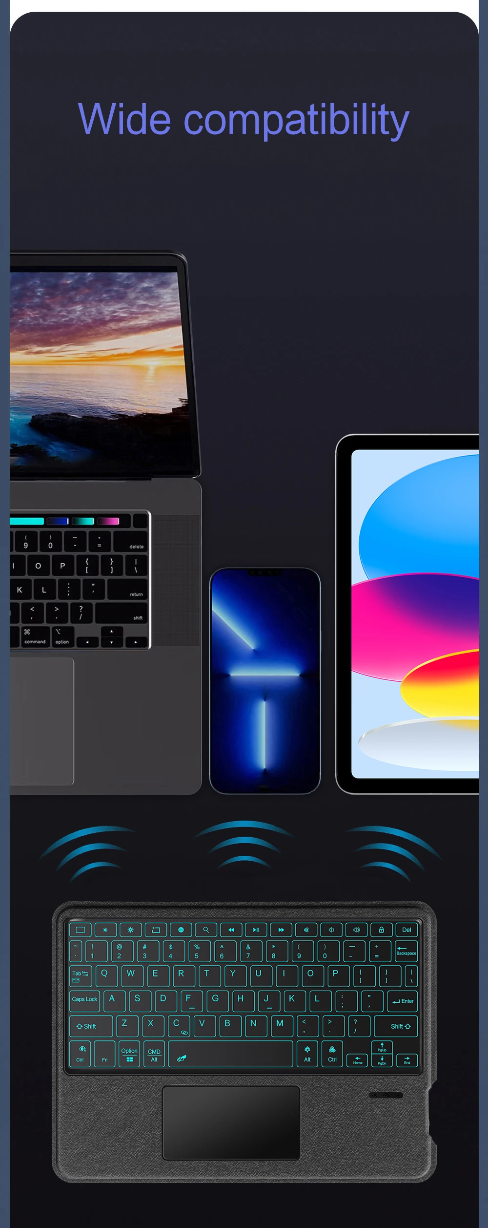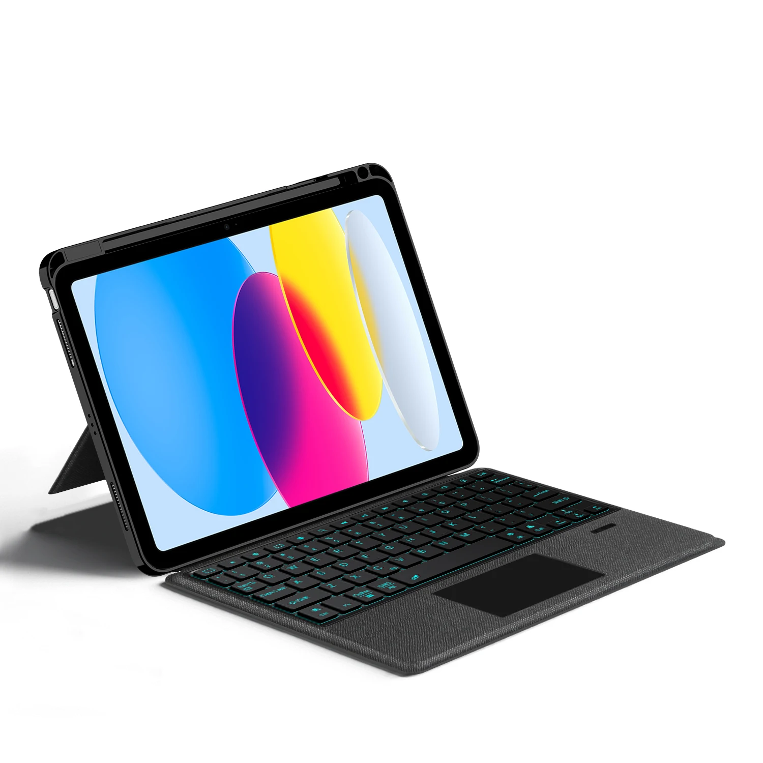 Esta es una funda para teclado desmontable, funda protectora de TPU suave, que puede proteger eficazmente su tableta.El teclado y la funda protectora se pueden separar. Teclado con retroiluminación y TouchPad.