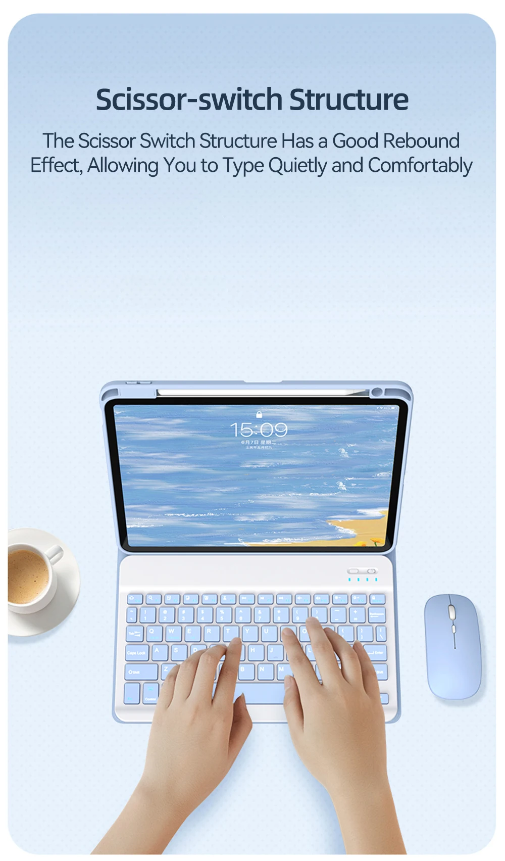 La Estructura del interruptor de tijera tiene un buen efecto de rebote, lo que le permite escribir de forma silenciosa y cómoda.