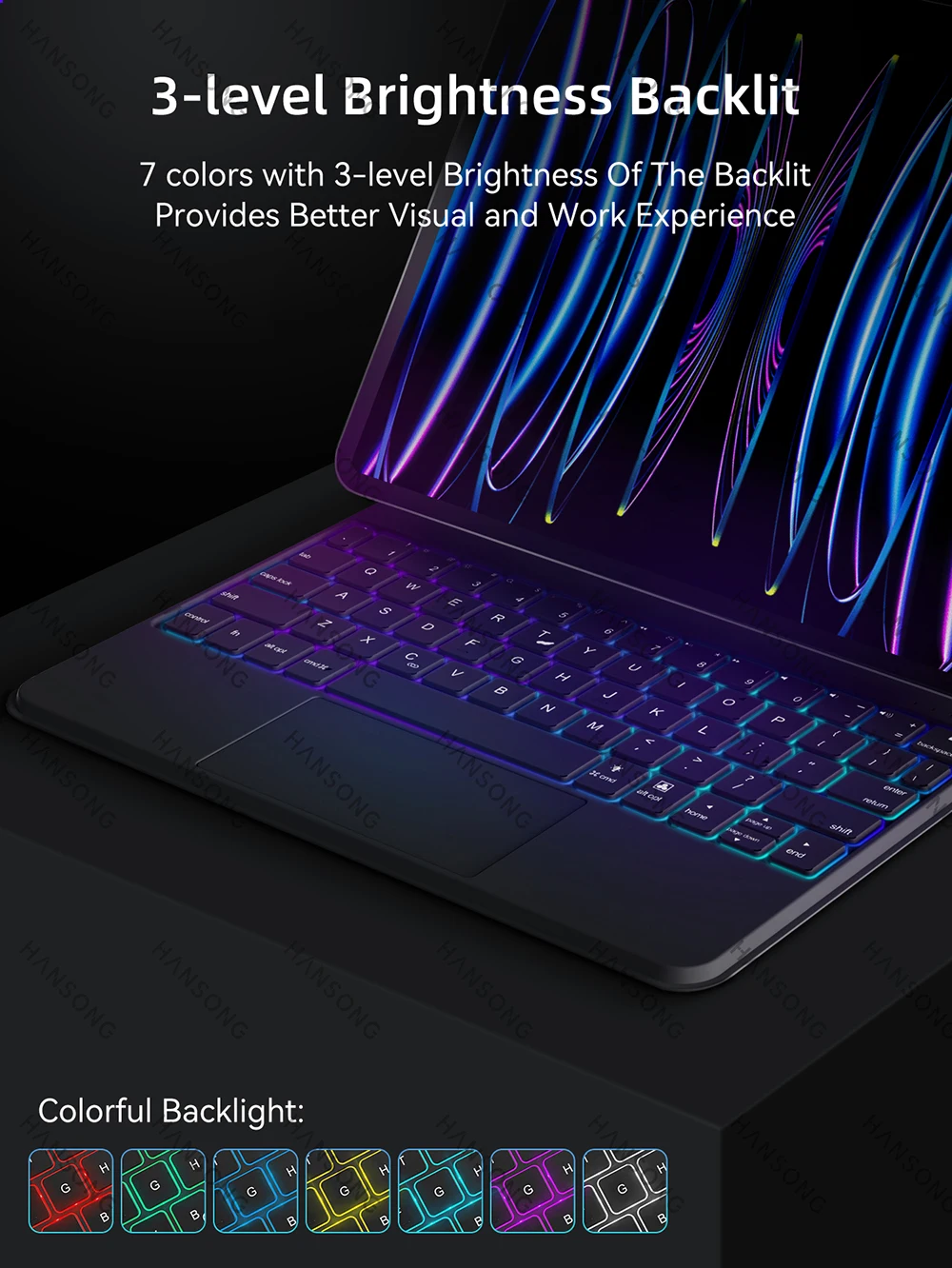 7 colores con brillo de 3 niveles de la retroiluminación proporciona una mejor experiencia visual y de trabajo.