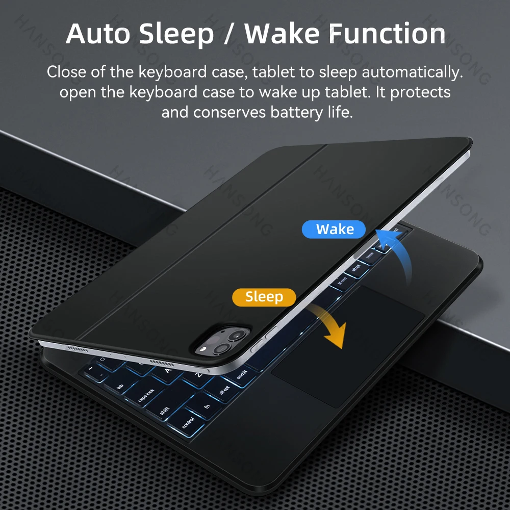 Cierre de la funda del teclado, tableta para dormir automáticamente. Abra la funda del teclado para encender la tableta. Protege y conserva la duración de la batería.