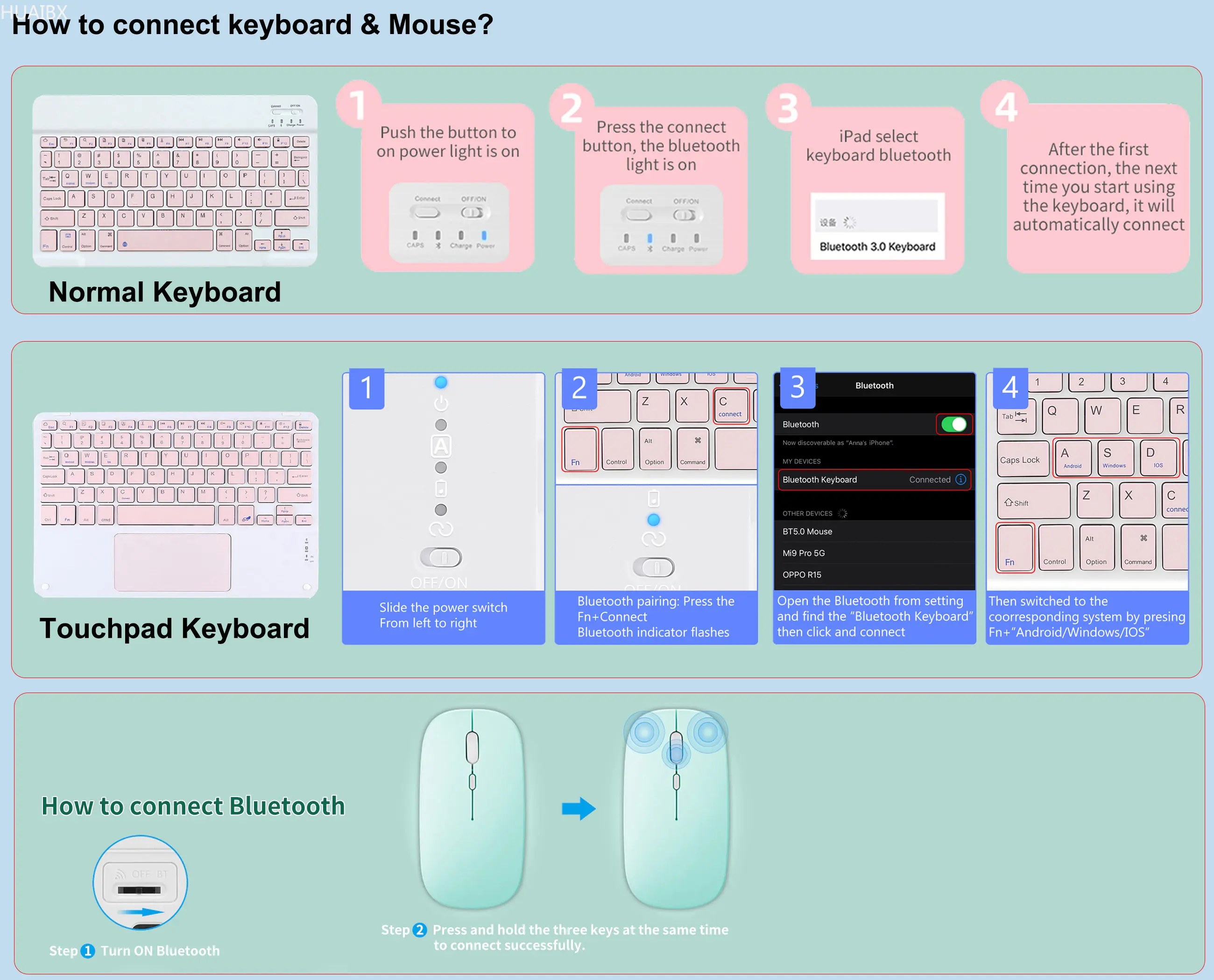 b.Abra el bluetooth de su iPad, elija el "teclado Bluetooth" y espere a que se conecte correctamente;