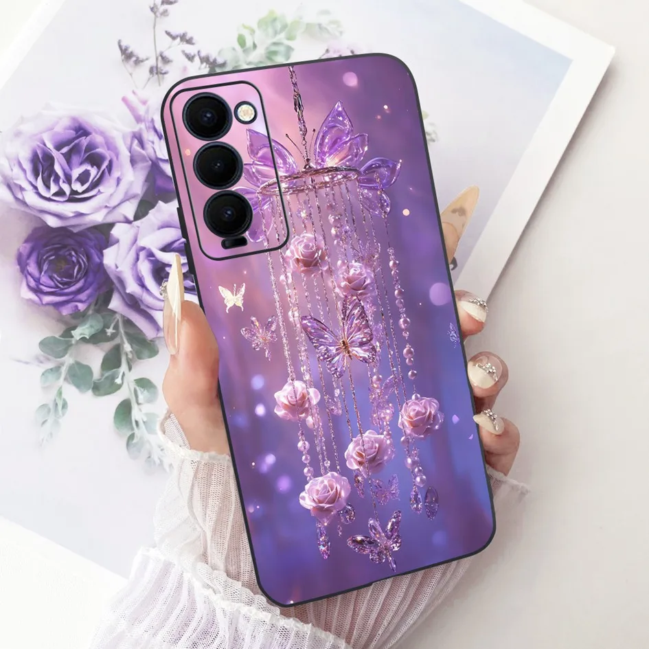 Funda para Tecno Camon 18 18P 18T 18i, funda de teléfono nueva y elegante con lazo de flores, Fundas mate de silicona suave para Camon 18 Premier Coque