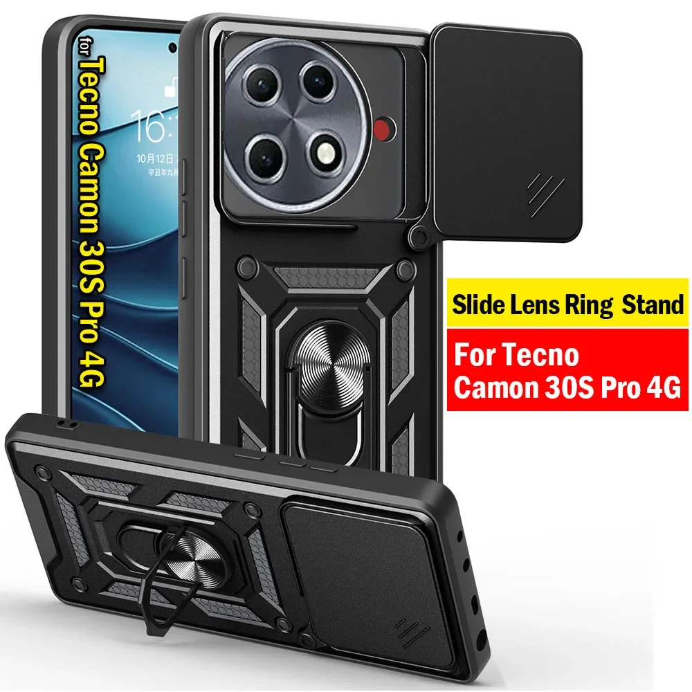 Comprar Funda para Tecno Camon 30s Pro 4G Funda protectora de cámara deslizante anillo giratorio soporte contraportada para Tecno Camon 30S Pro 4G Capa