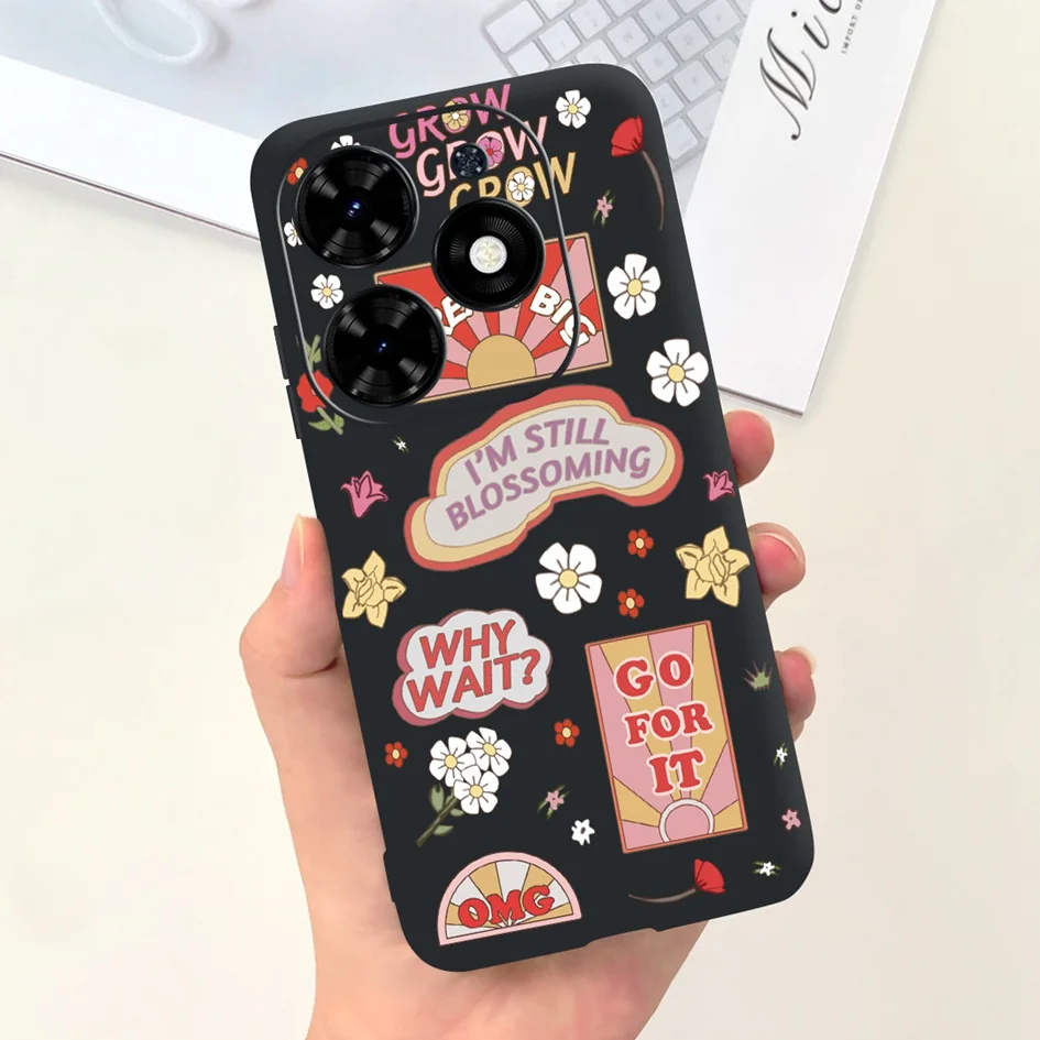 Para Funda Tecno Spark Go 2024 Funda Spark 20C BG7n Funda Popular flor negra silicona suave Coque para Spark20C SparkGo 2024 Shell