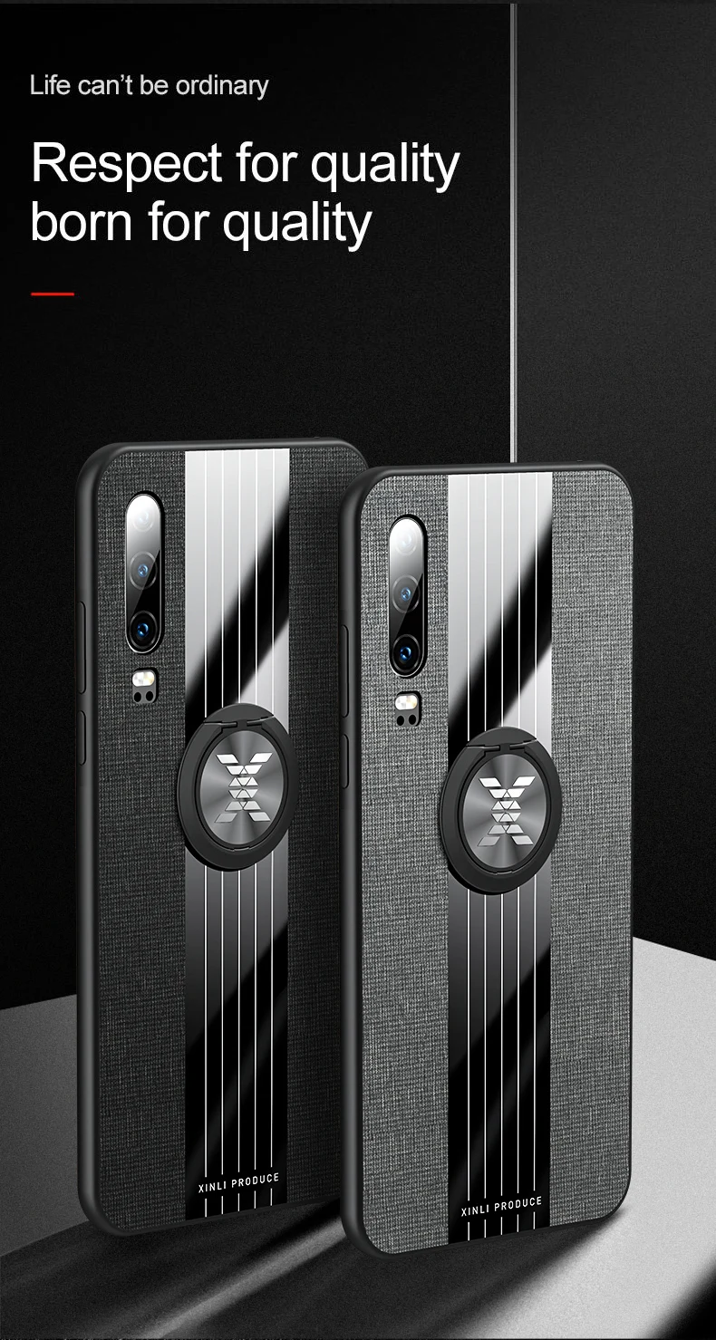 Para Huawei P30 Pro funda de lujo de tela dura con soporte de anillo imán cubierta trasera protectora delgada para huawei p30 lite p30pro p30 shell