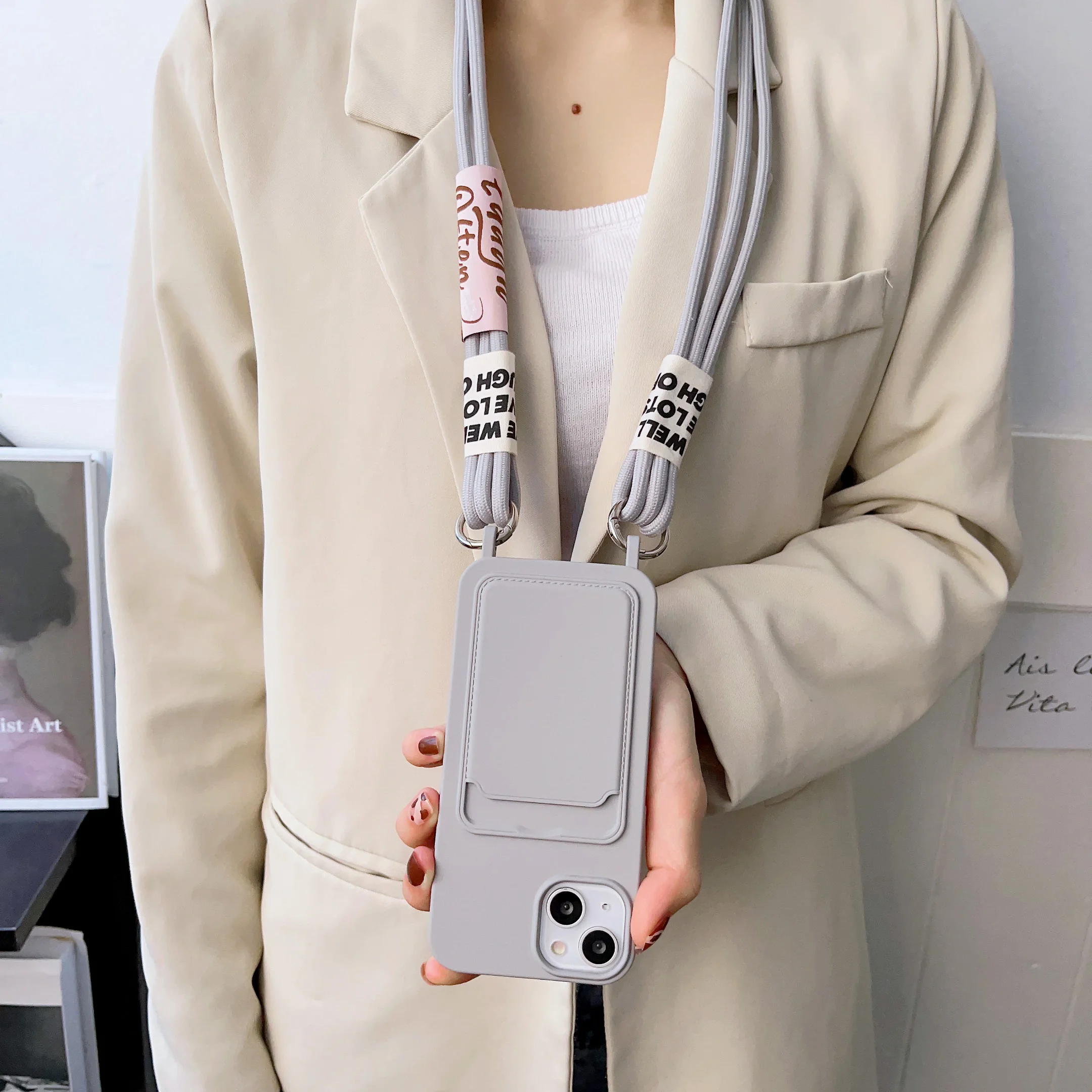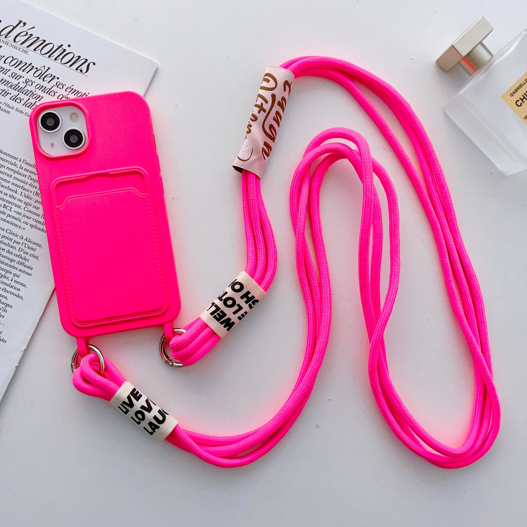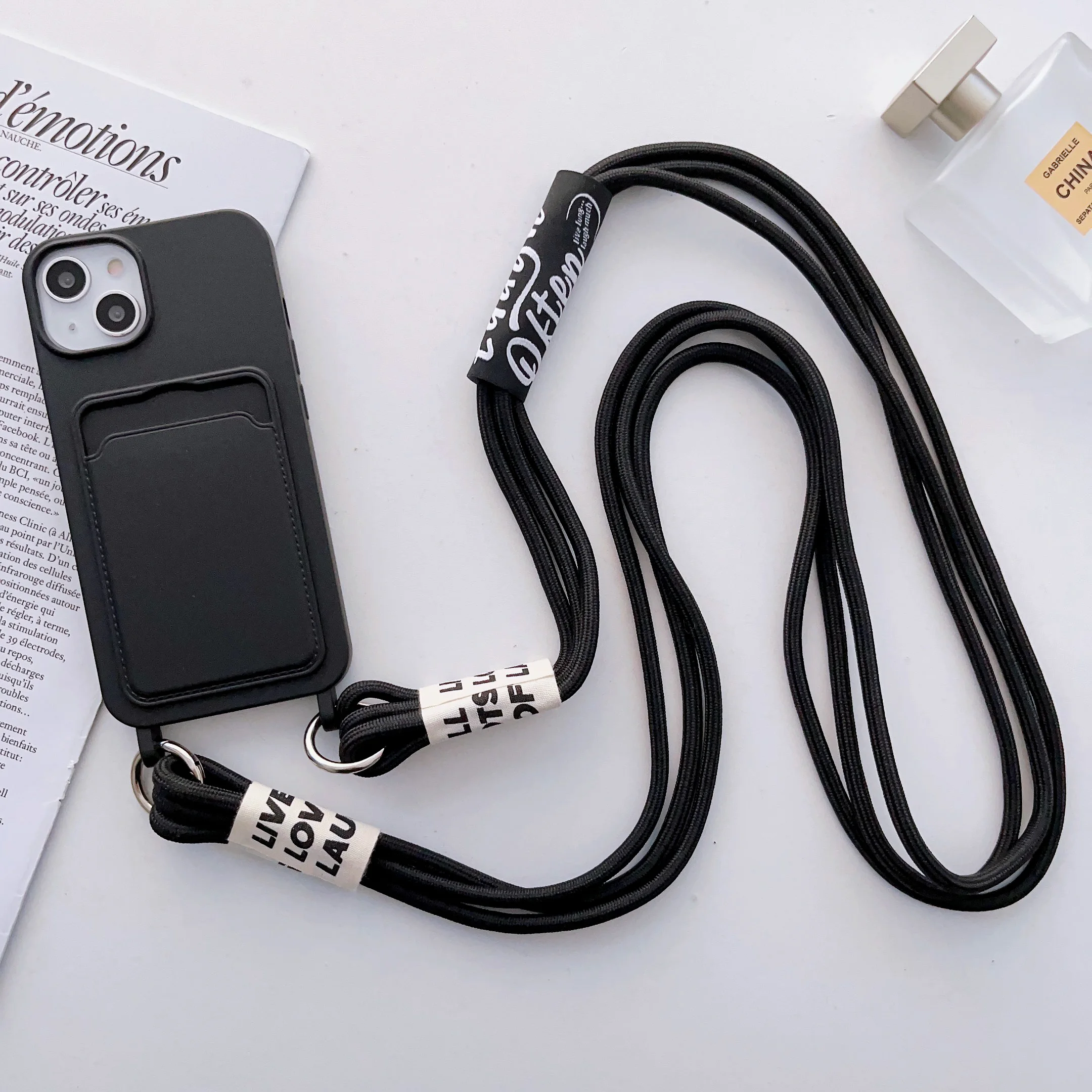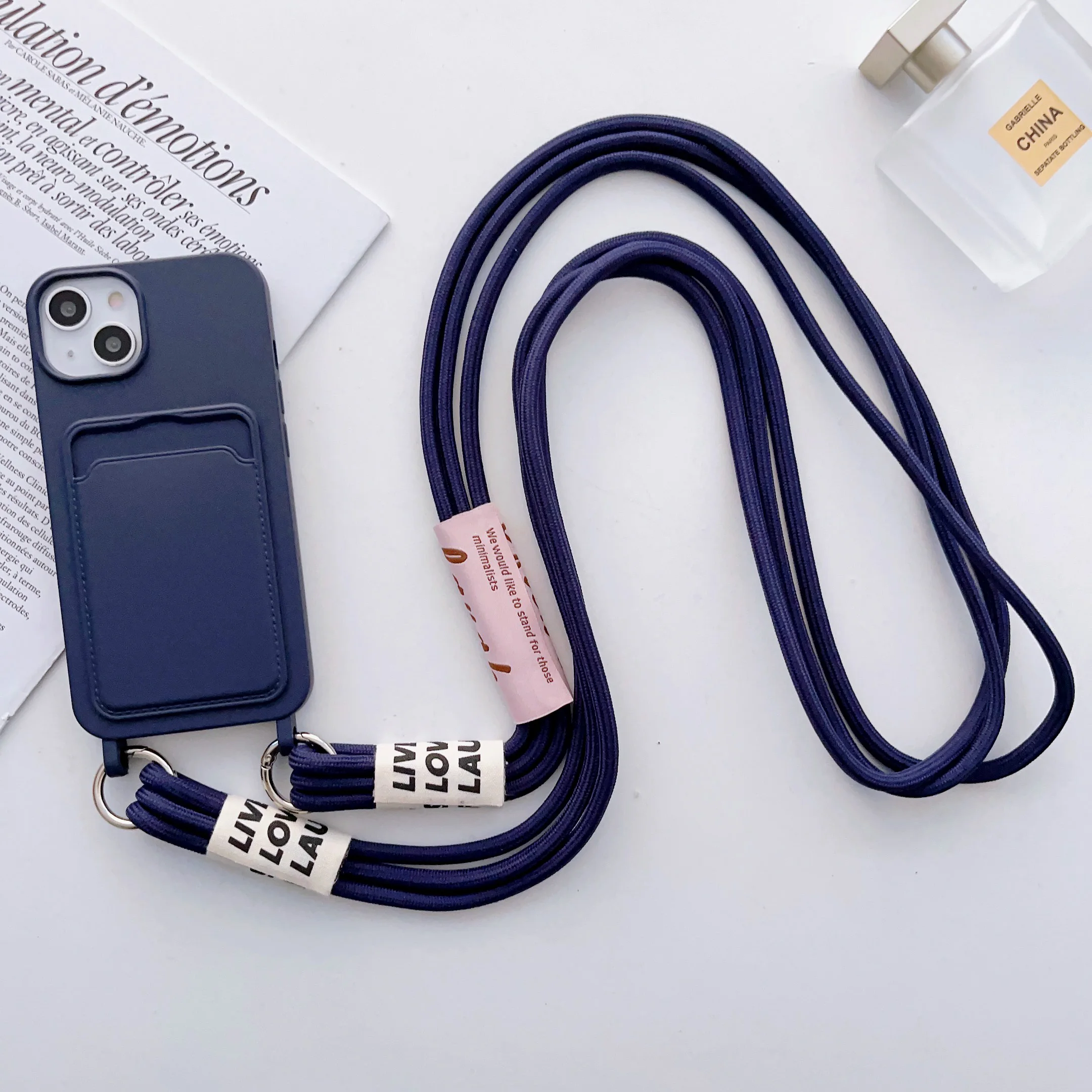 Comprar Funda de teléfono 3 en 1 con cordón para iPhone, funda de bolsillo con bolsa de Tpu para 15 Pro Max, 14, 13, 11, 12, XR, X, XS, 7, 8 Plus, SE2022