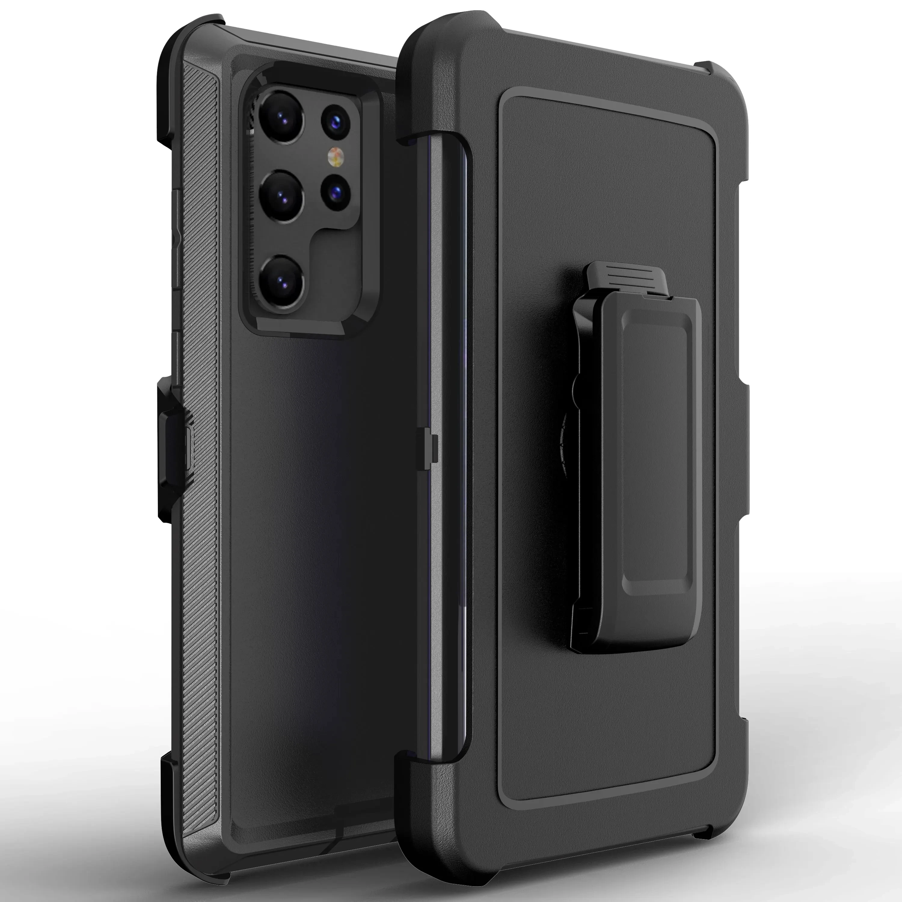 Comprar Funda de teléfono 3 en 1 para Samsung Galaxy S22, S21, S20, S23, S24 ULTRA, S10 Plus, Note 20, 10, 9, 8, armadura resistente a prueba de golpes + CliP para cinturón