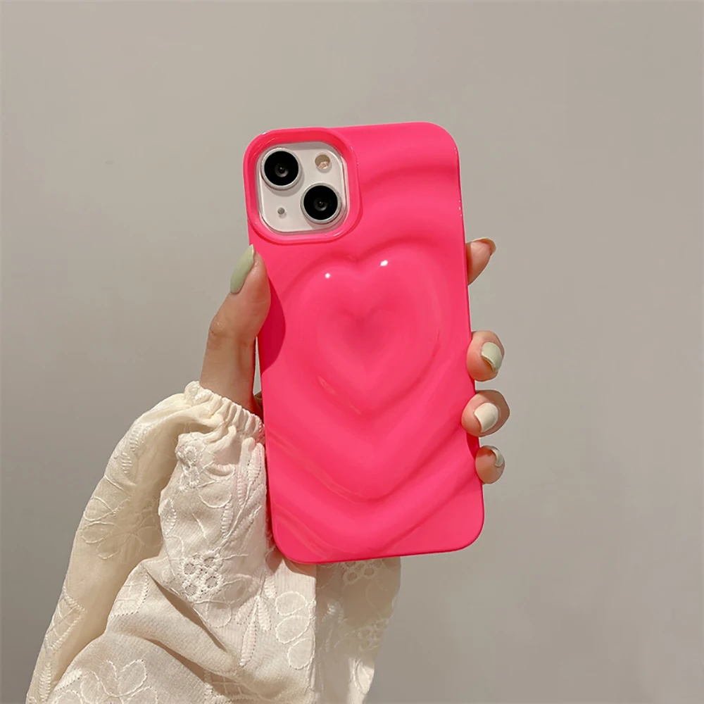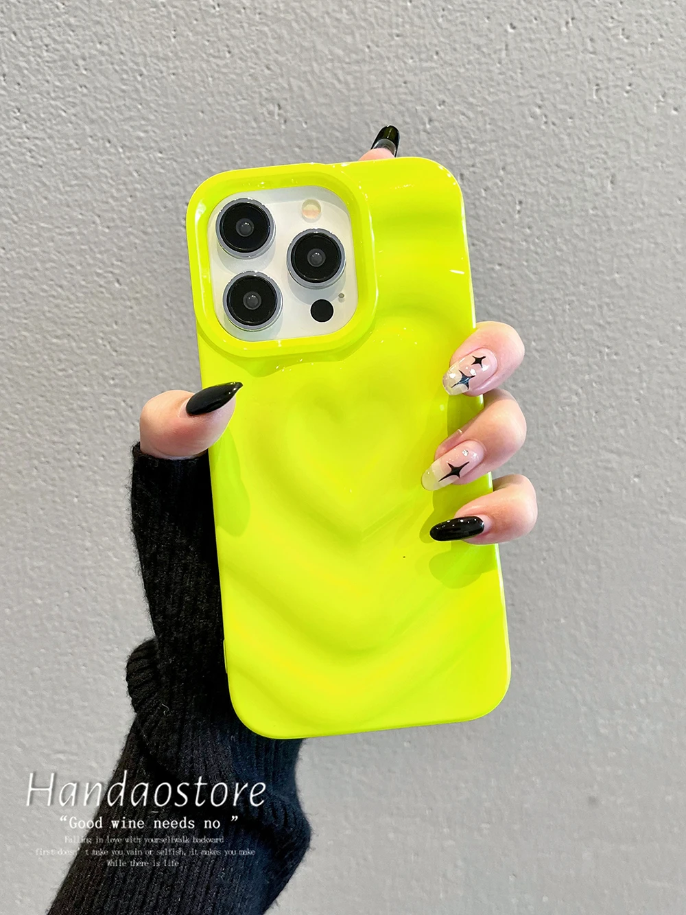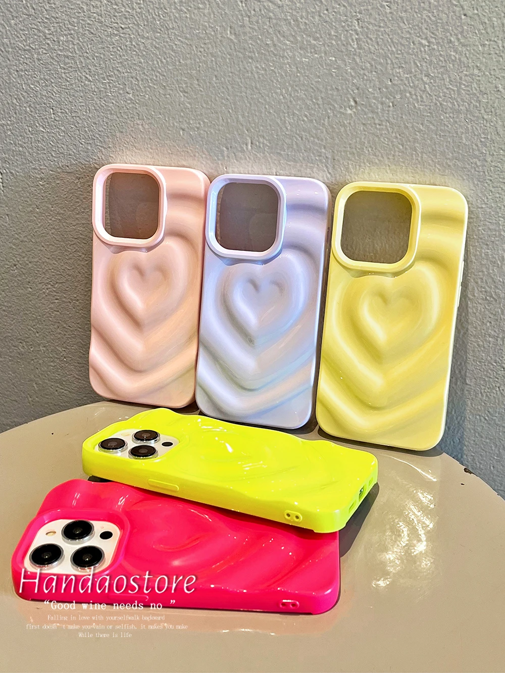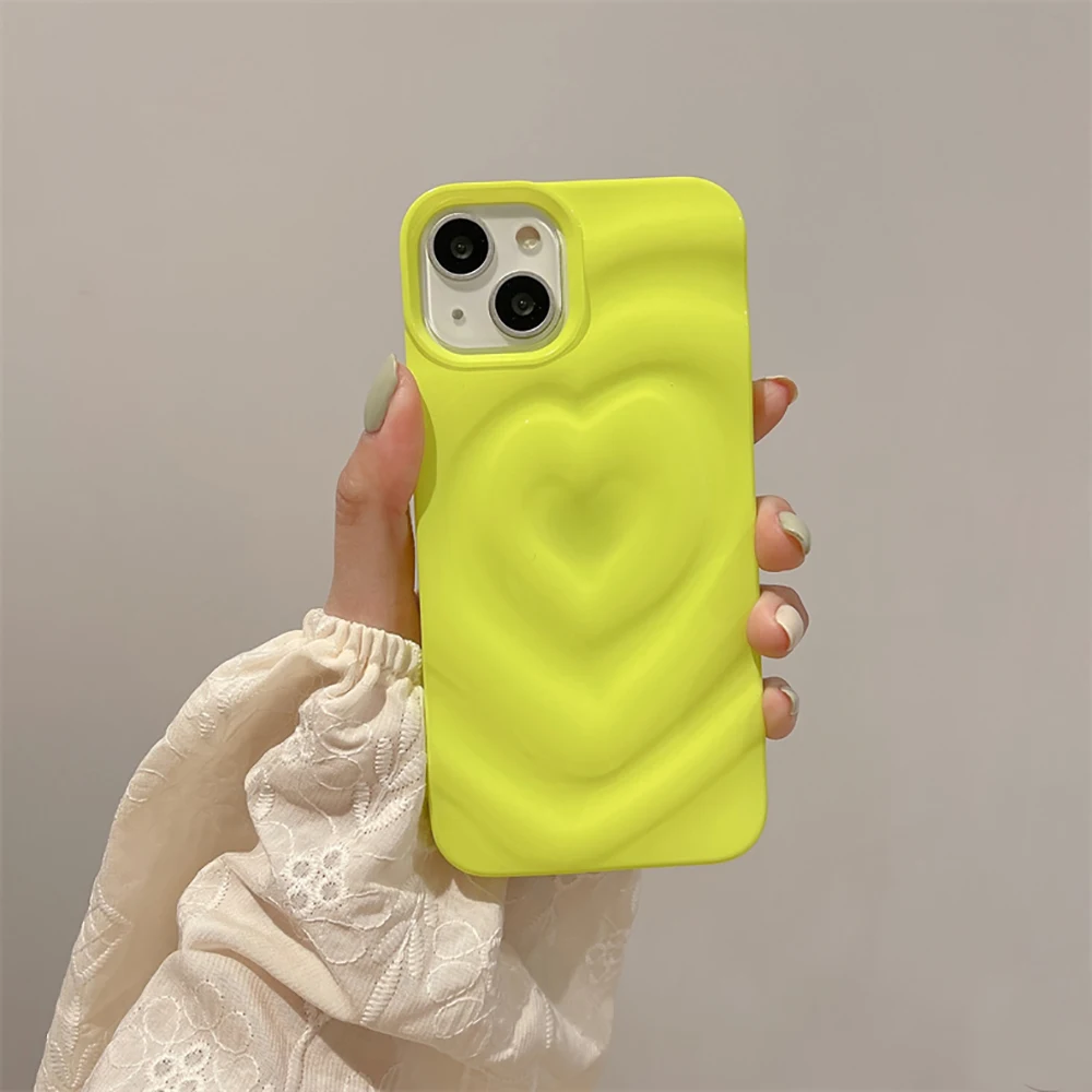Funda de teléfono 3D lindo corazón amor caramelo Color a prueba de golpes para iPhone 14 11 12 13 Pro Max Color fluorescente suave contraportada