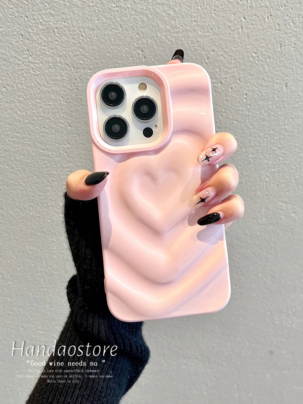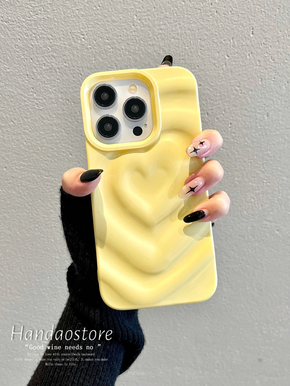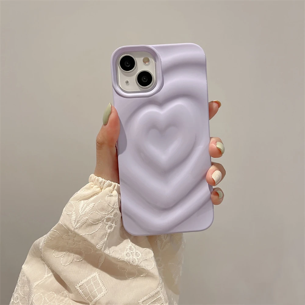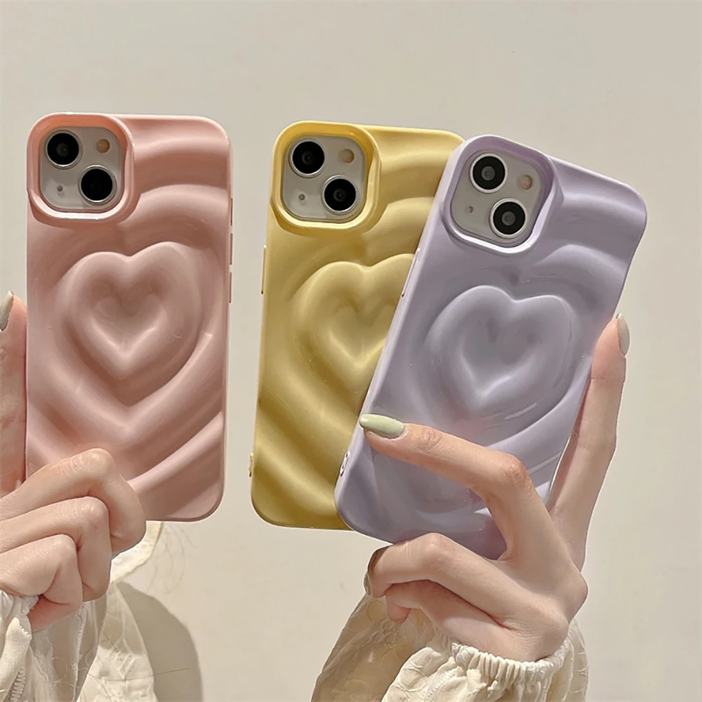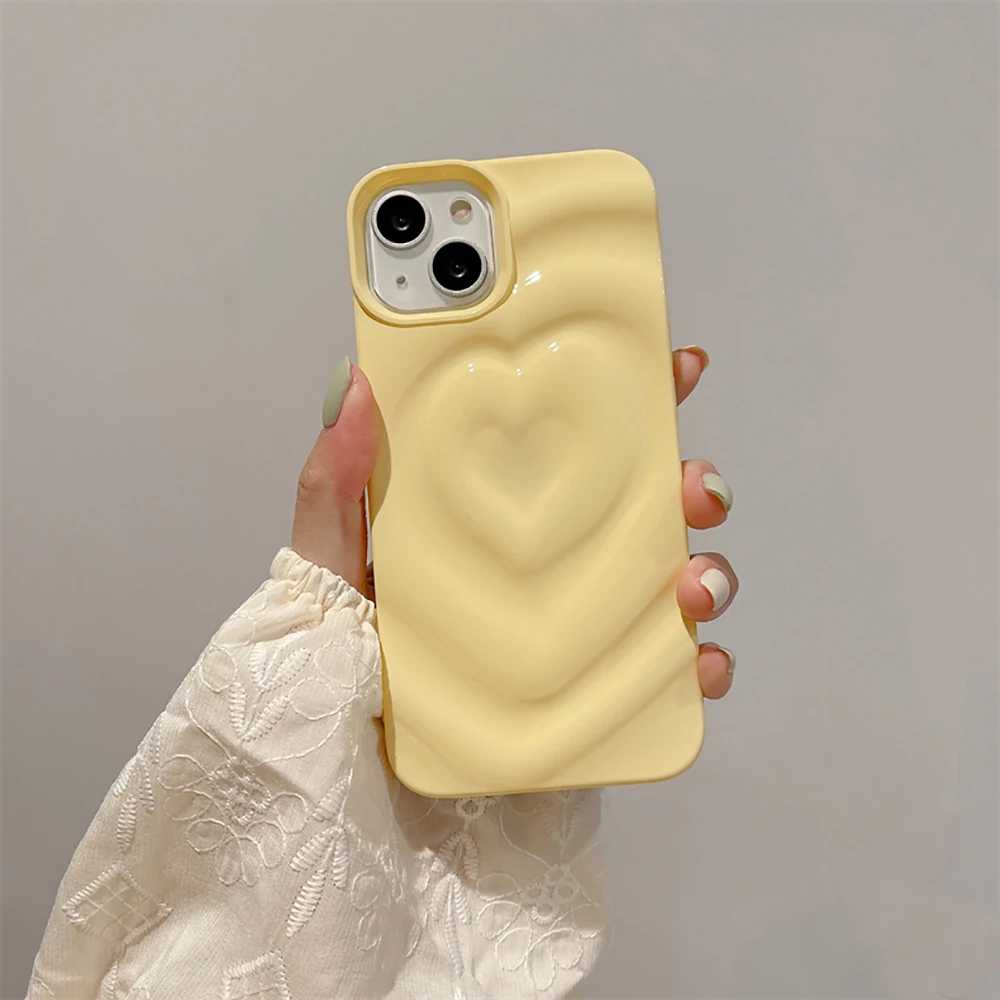 Funda de teléfono 3D lindo corazón amor caramelo Color a prueba de golpes para iPhone 14 11 12 13 Pro Max Color fluorescente suave contraportada