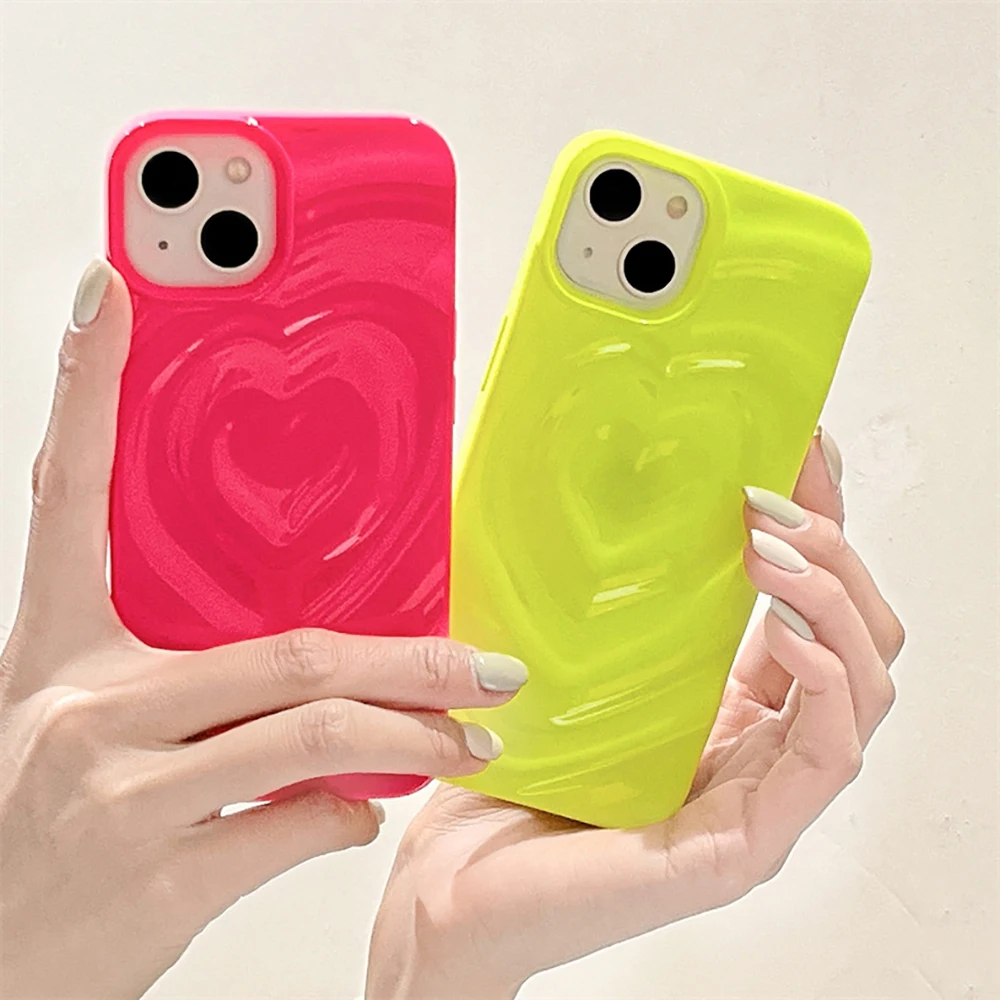 Funda de teléfono 3D lindo corazón amor caramelo Color a prueba de golpes para iPhone 14 11 12 13 Pro Max Color fluorescente suave contraportada