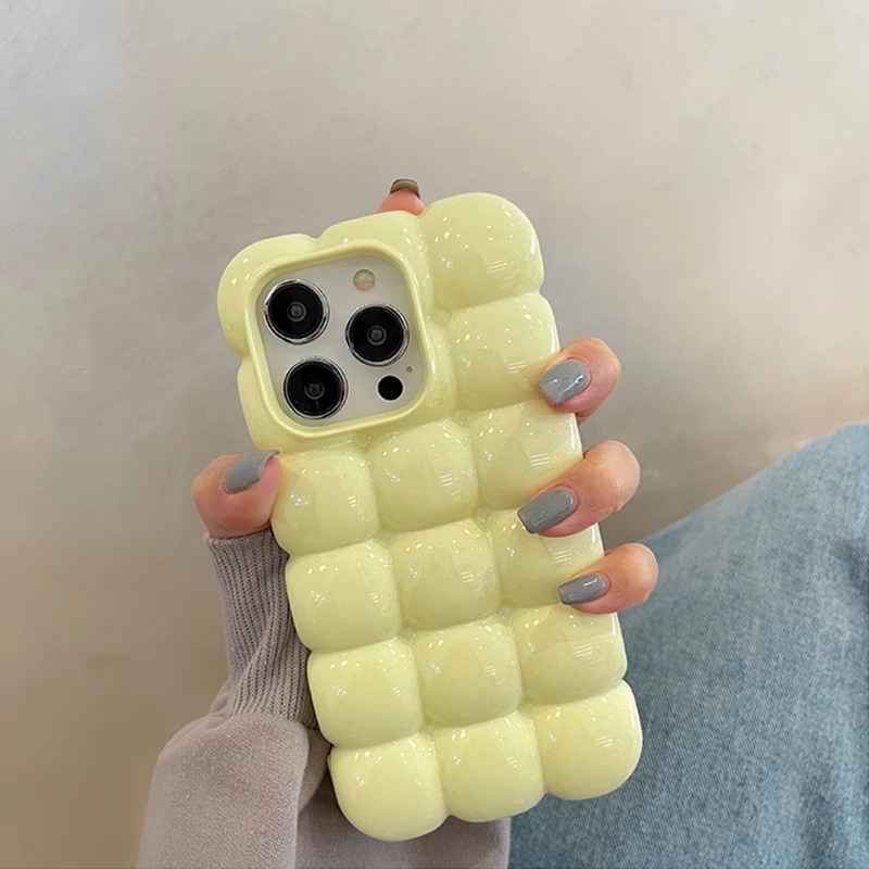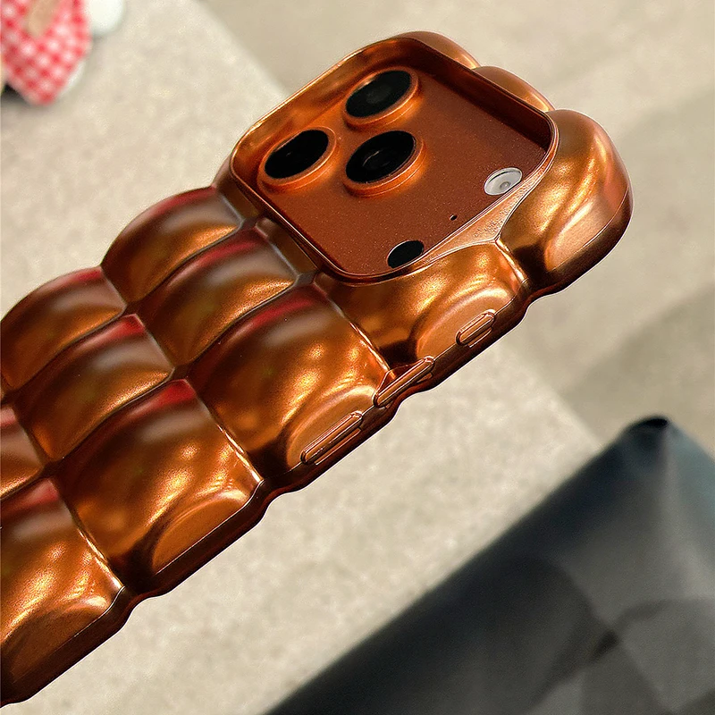 Cute Stylish Bread Chocolate Block 3D Phone Case For iPhone 14 13 12 15 Pro Max 11 Glossy Protective Cover Fundas